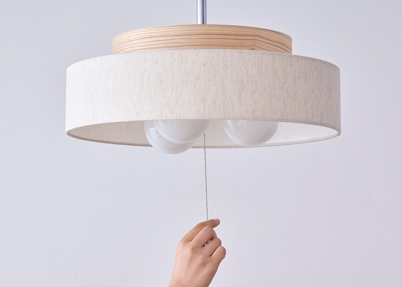 電球3灯を点灯すれば、お部屋の隅々まで光が届く、活動的で華やかな空間へと生まれ変わります。家族が集う団らんの時間や、手元にしっかりとした明るさが欲しいお食事のシーンに最適です。(写真はナチュラル。電球3灯ON。300Wの明るさ)