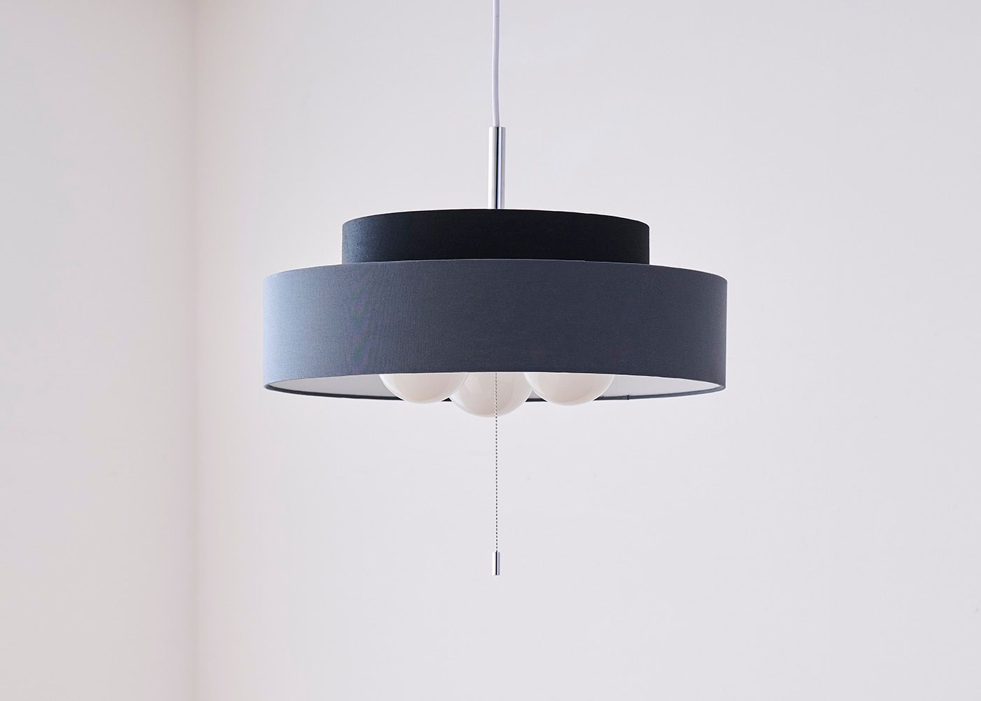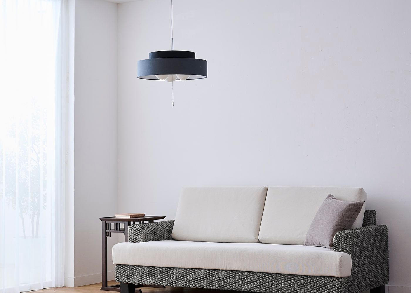 ファブリックシェードで構成された照明もご用意しています。お部屋の雰囲気によって使い分けると、インテリアの完成度が一段と高まります。暮らしに優しく溶け込む、理想の一台をお選びください。(写真はブラック/グレー)