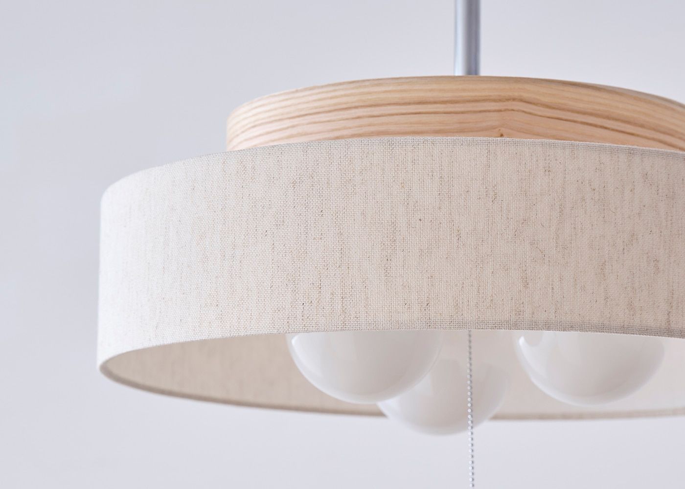天井まで届く柔らかな光が、お部屋全体を心地よく包みます。下部は光を遮らない構造を採用し、3灯の明るさをダイレクトに食卓へ。ダイニングを隅々まで照らし出す、使い勝手の良い開放的なライトです。(写真はナチュラル)