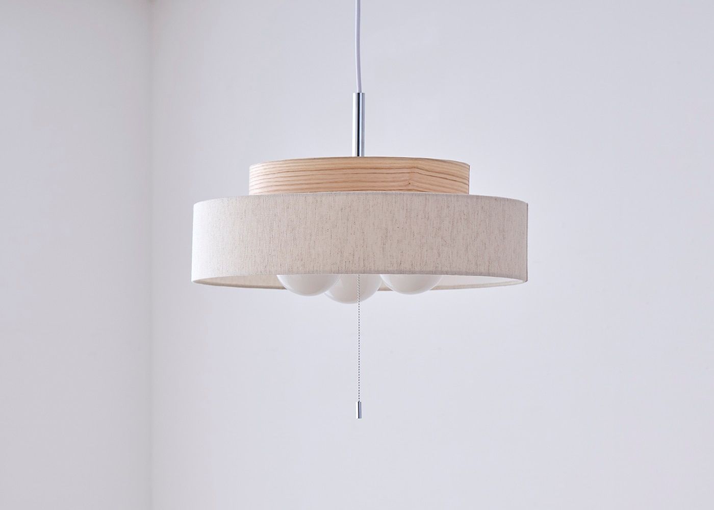 豊かな光が日々の暮らしを明るく照らす、三灯式照明のデュオ・ペンダントライト。二層の円柱シェードが映える端正なデザインは、インテリアの質を高めるアクセントに。全灯から常夜灯まで、シーンに合わせた灯りで空間を自在に演出します。