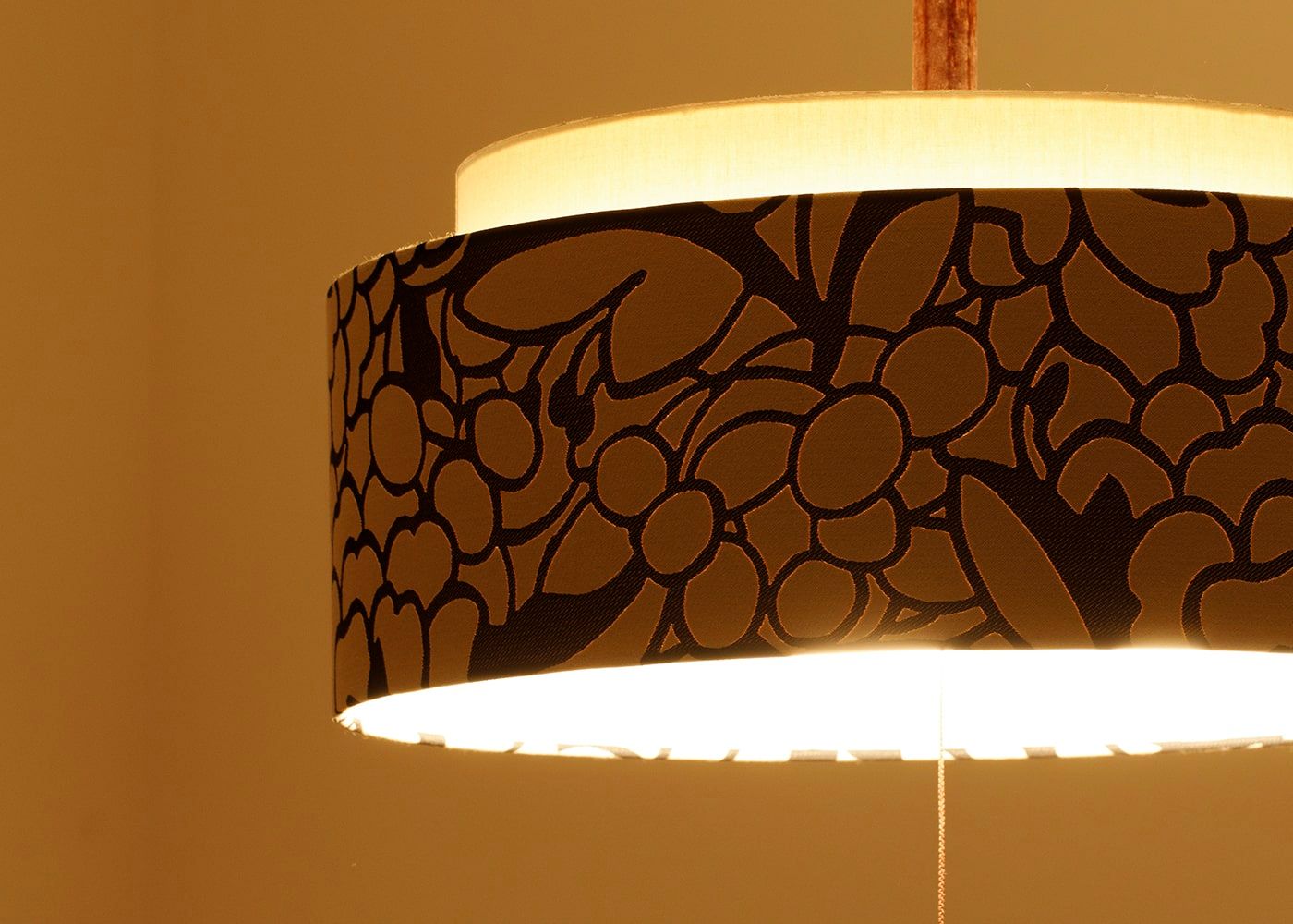 花柄の上に設けた生成りのシェードが、コスイの存在感と高級感を引き立てます。(写真はKSベージュ。電球OFF)※販売終了色