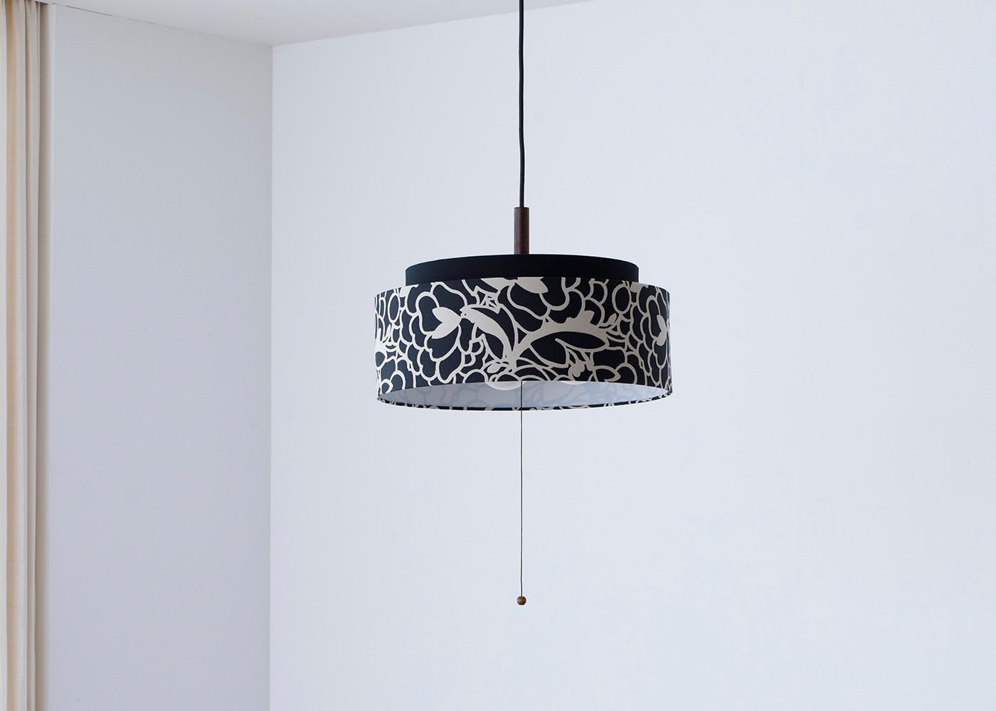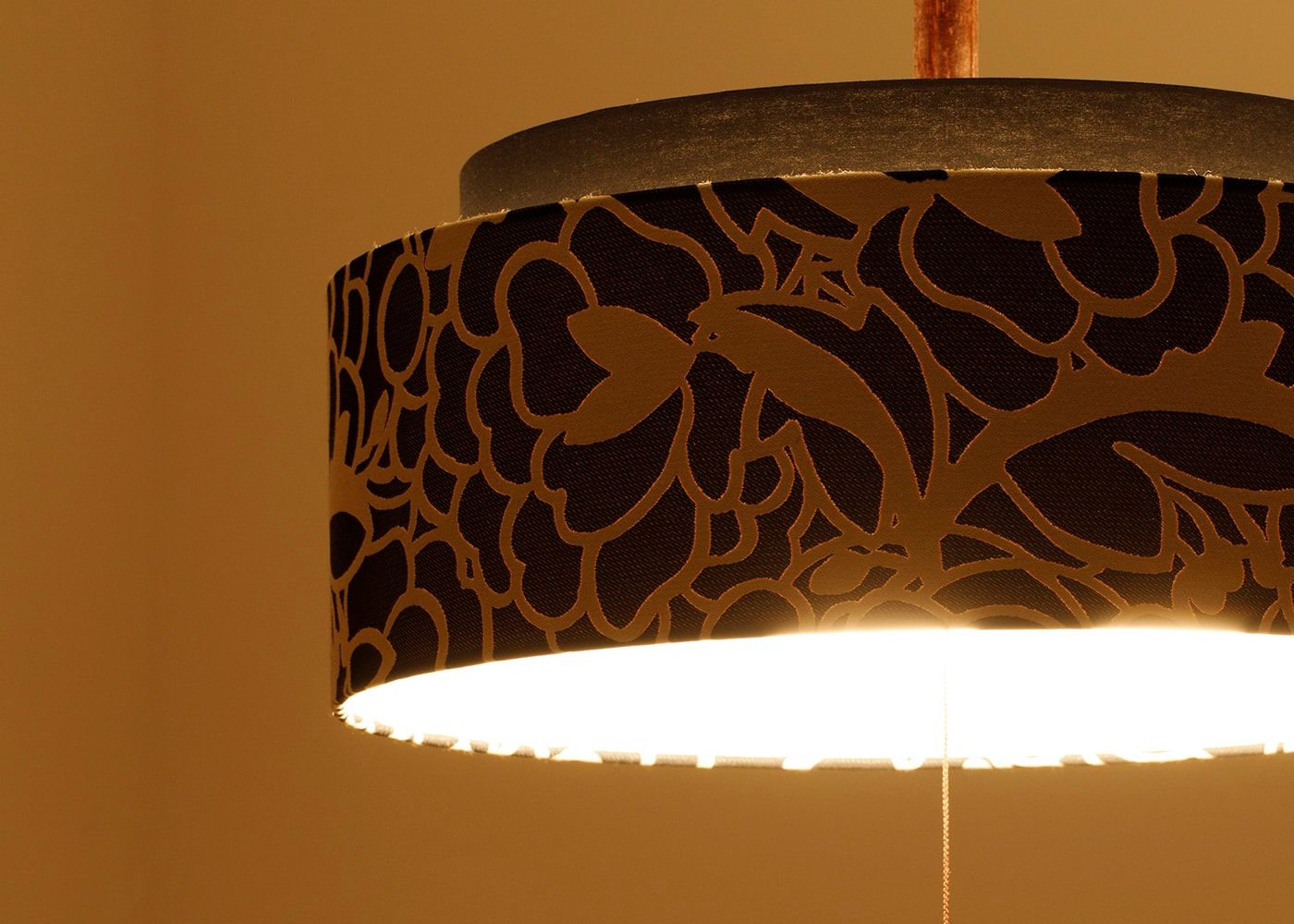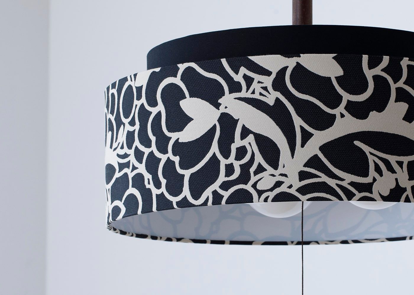 花柄の上に設けた黒いシェードが、湖水の華のコンセプトをより引き立ててくれます。空間を引き締めてスタイリッシュに魅せるブラックでまとめました。(写真はKSブラック。電球OFF)