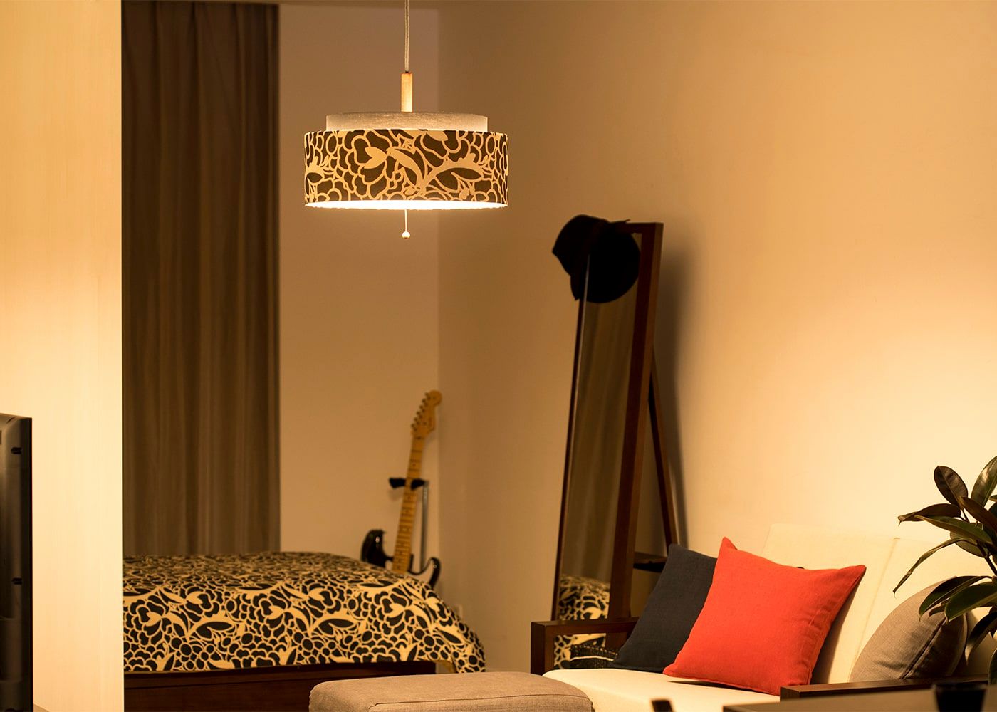 4〜6畳ほどの空間に適した明るさで、くつろぎの時間をやさしく照らします。程よい灯りは寝室にもおすすめです。