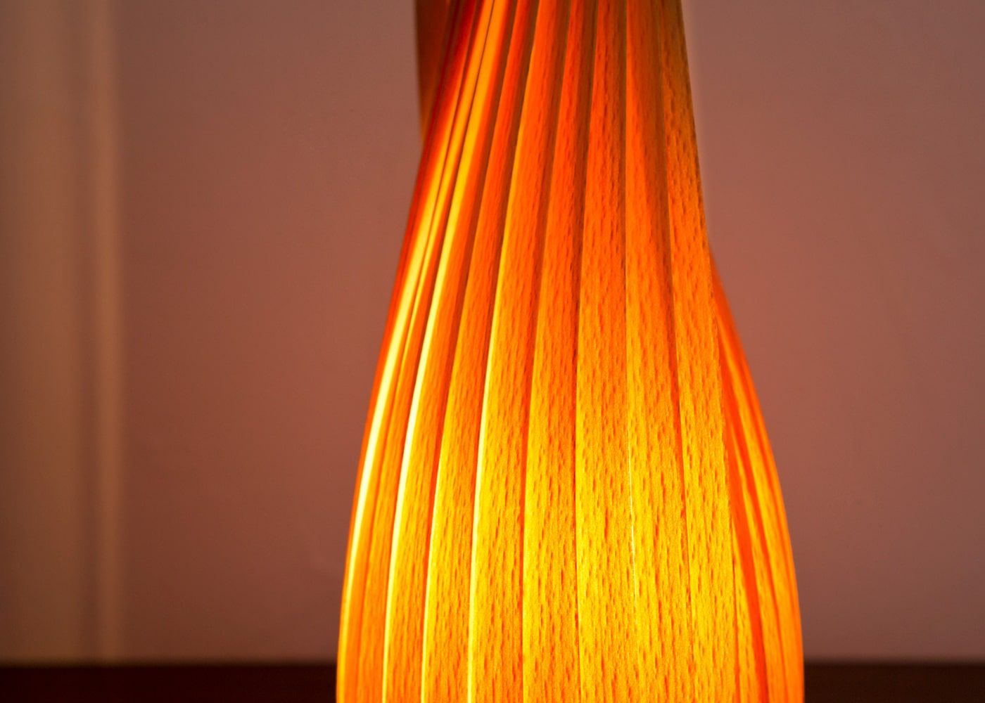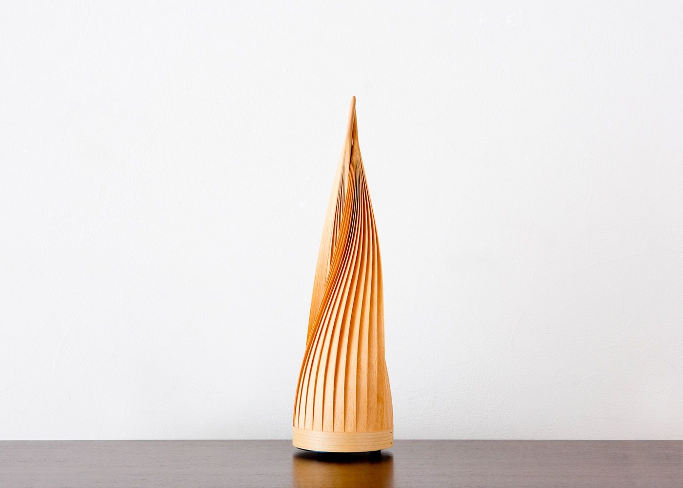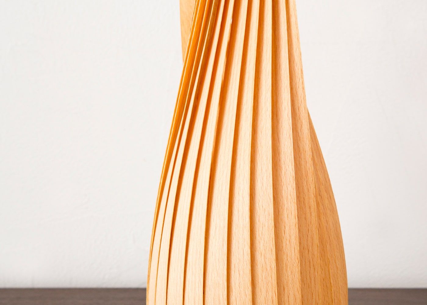 薄くスライスしたブナ材をドレープのように重ねた柔らかなフォルムが特長です。