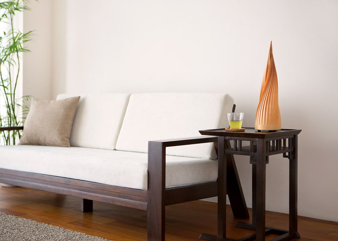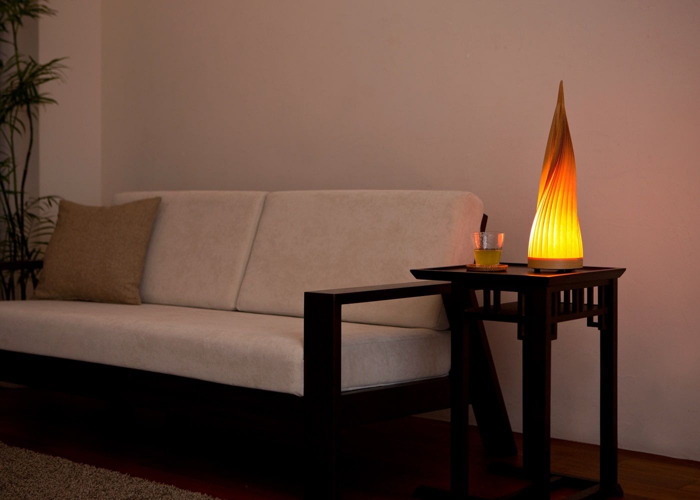 見た目にも美しい洗練感のあるデザインは、置いているだけでもリビングのアクセントに。独特なねじったデザインが日中のリビングにも映えます。