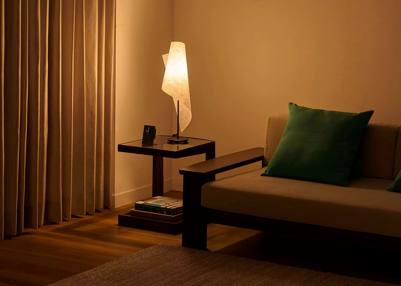 シェードに灯る優しい光がその空間を包み込み、気持ちをホッと落ち着かせてくれます。