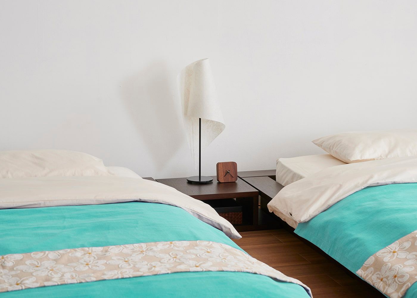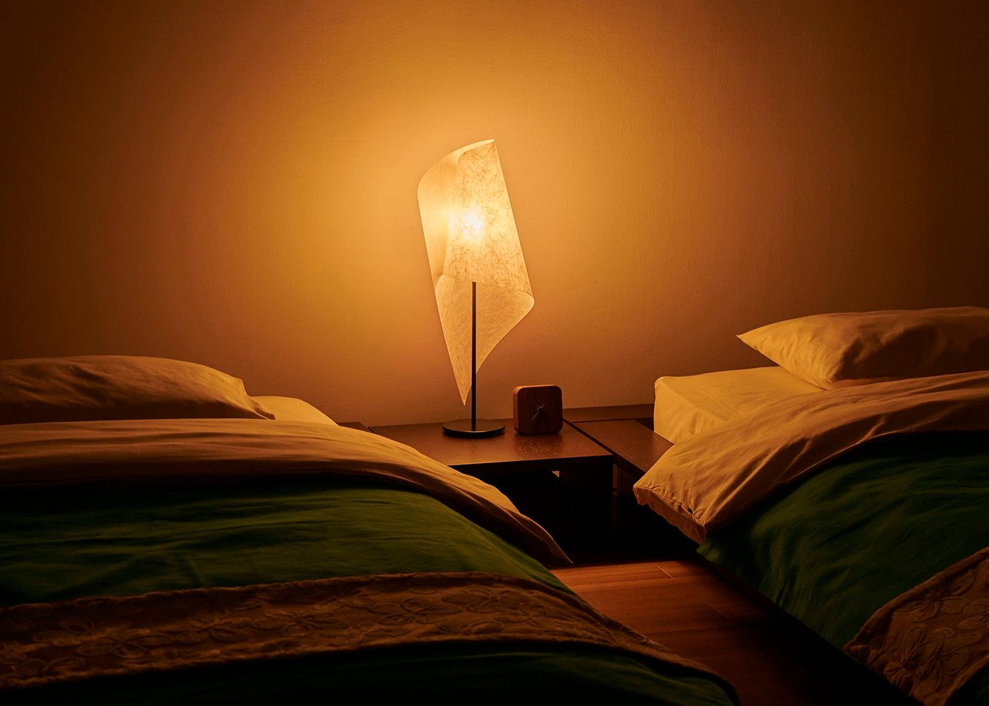 素材感のあるワーロン紙から広がる優しい灯りが、ベッド周りを包み込んで心地良くお休みできます。