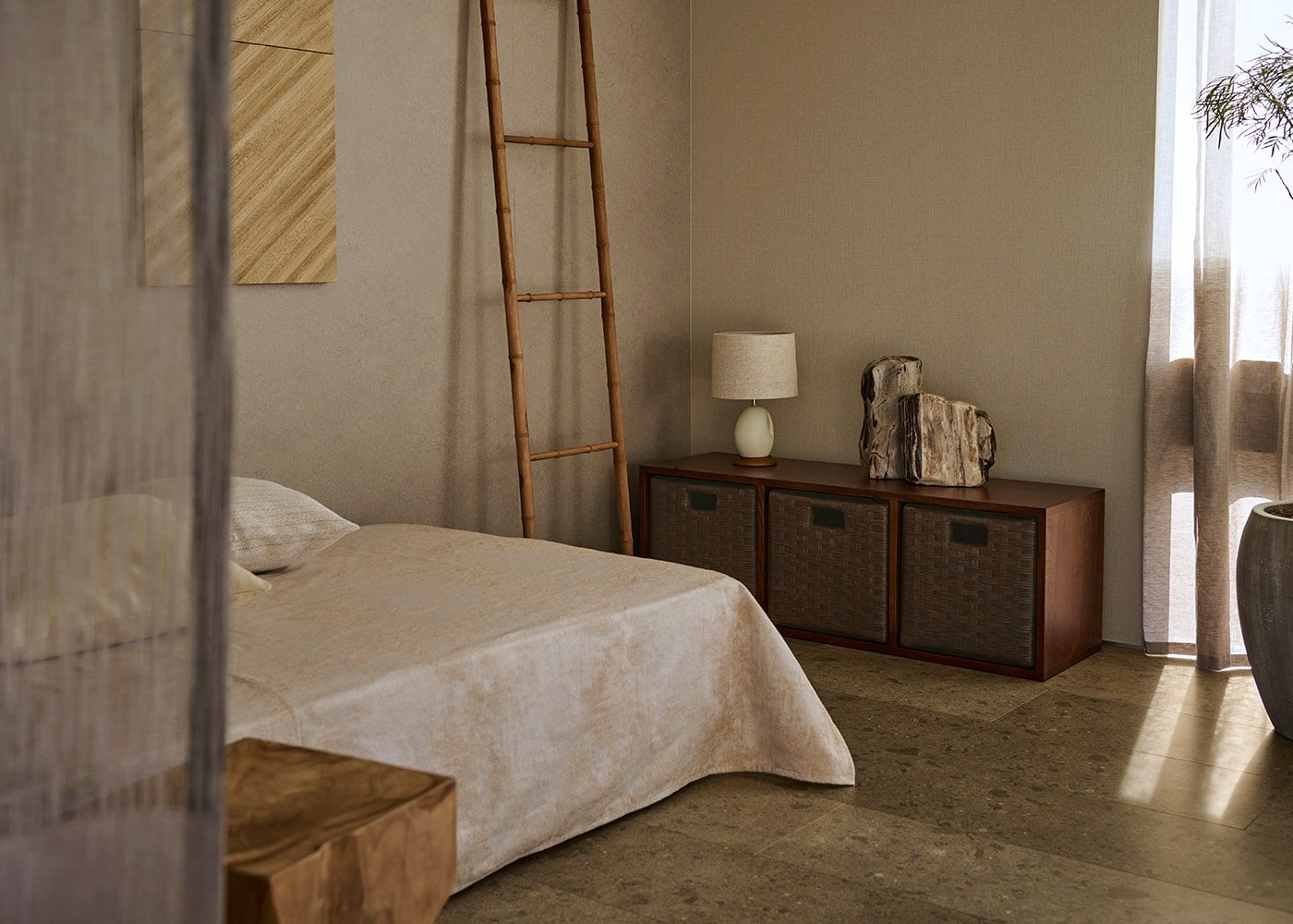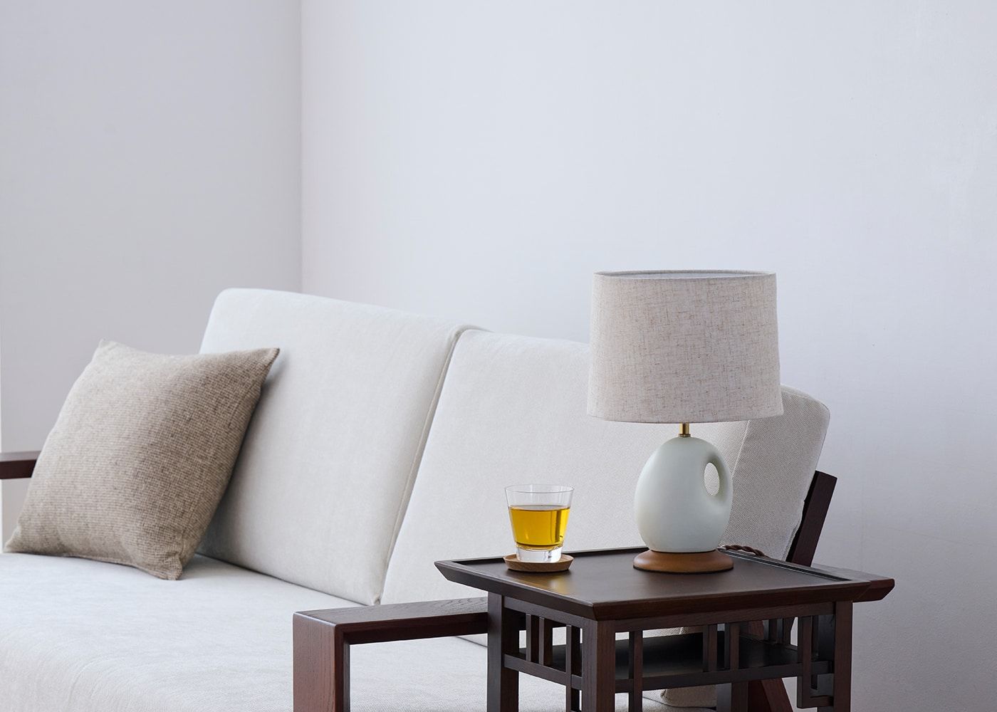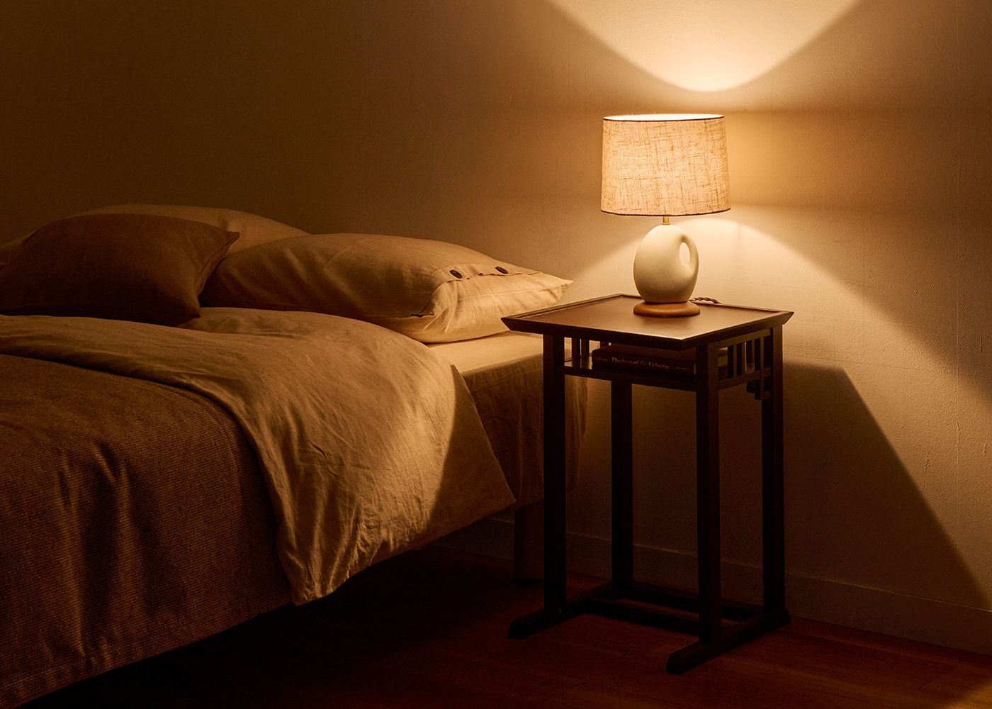 セラ・テーブルランプは、ベッドサイドの照明としても活用できます。ライフスタイルに合わせて、リビングから寝室までマルチに活躍する照明です。(写真は