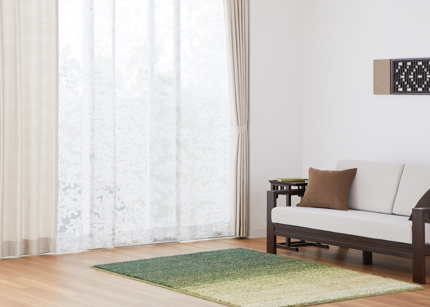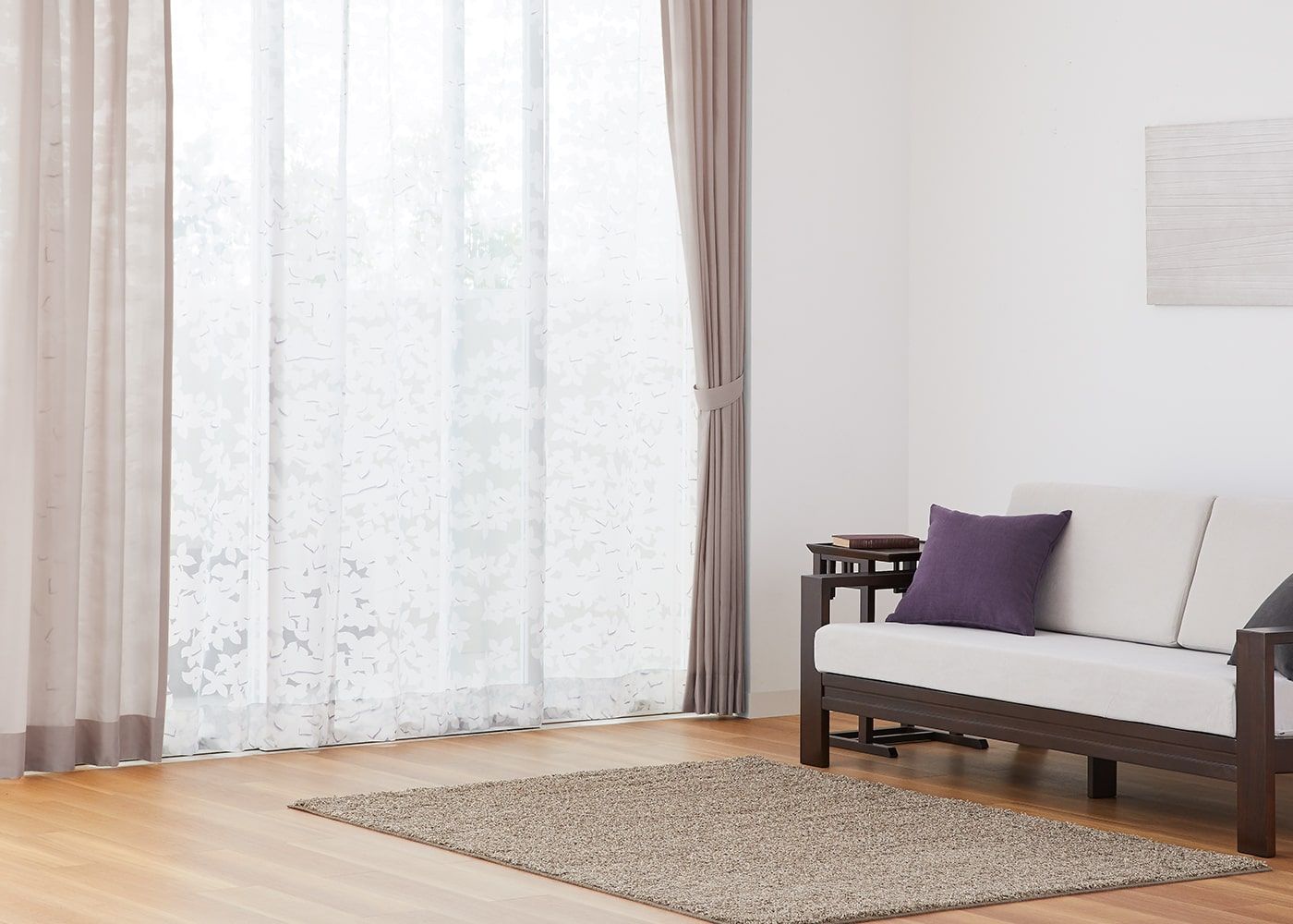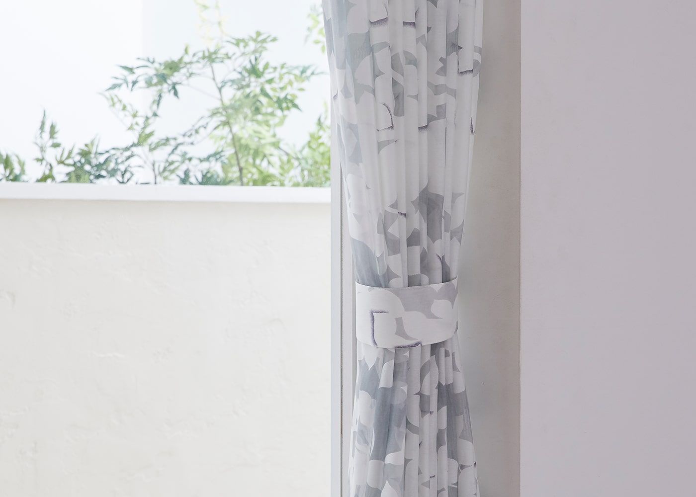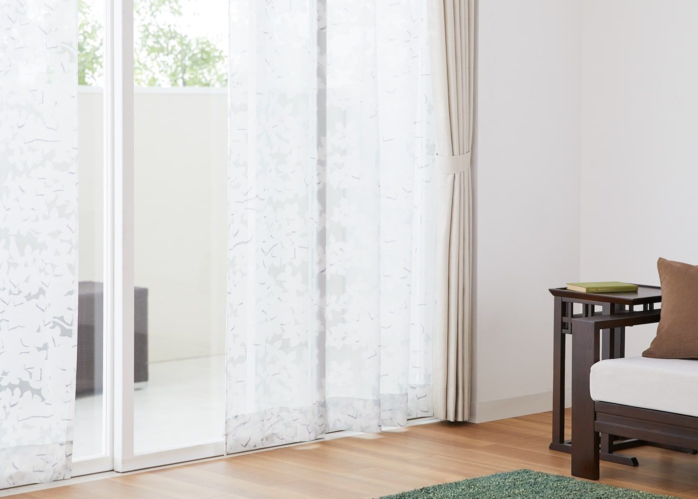 フォーレは、見る人の心を癒してくれる木陰のような雰囲気が最大の魅力。一見インパクトのある柄に見えても、実際コーディネートすると光で透過するため、お部屋の程良いアクセントになってくれます。(写真はホワイト ノンタック)