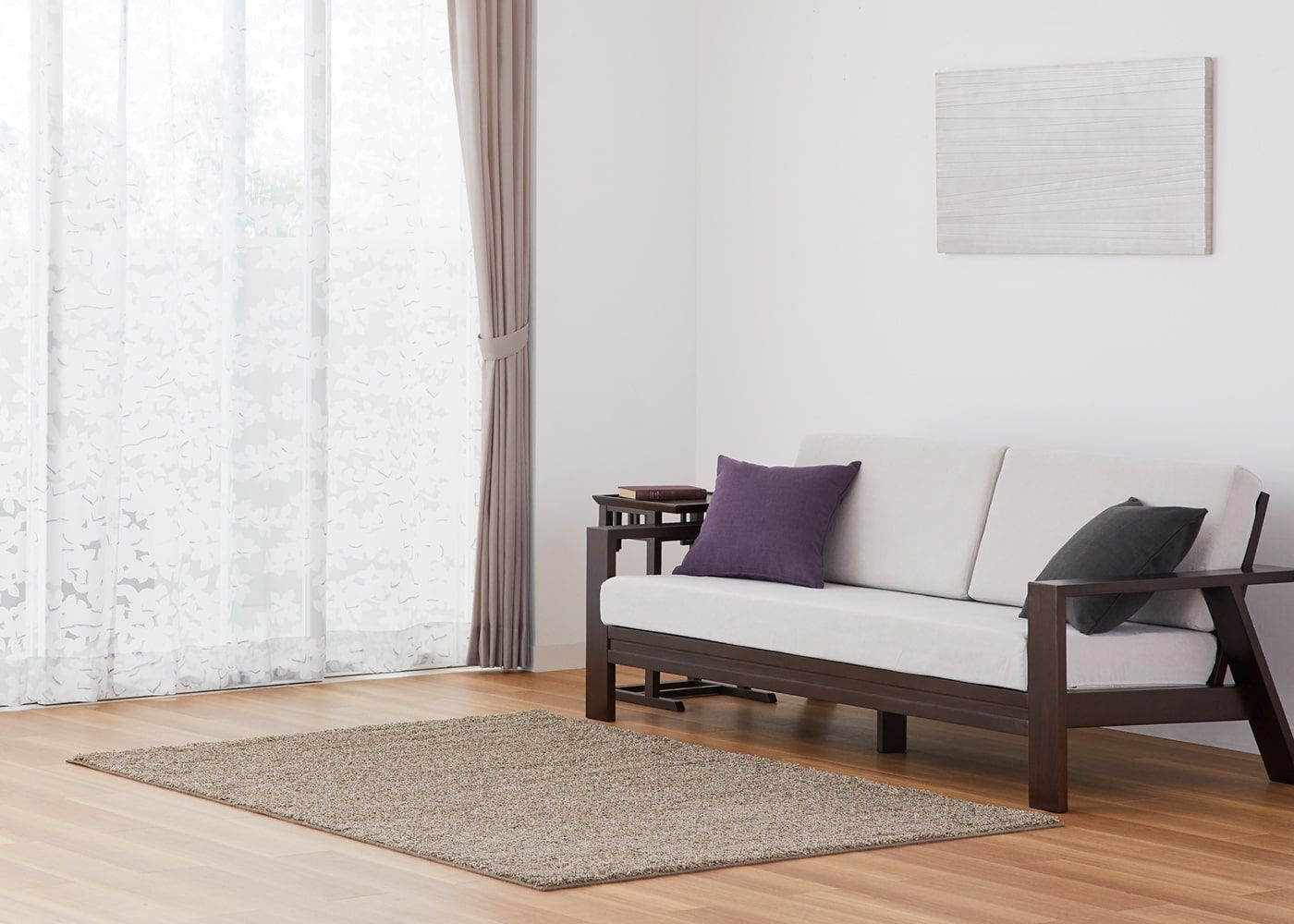 ラグを組み合わせた、ブラウン×グリーンの自然を感じる癒しのコーディネートが際立ちます。(写真はホワイト ノンタック)