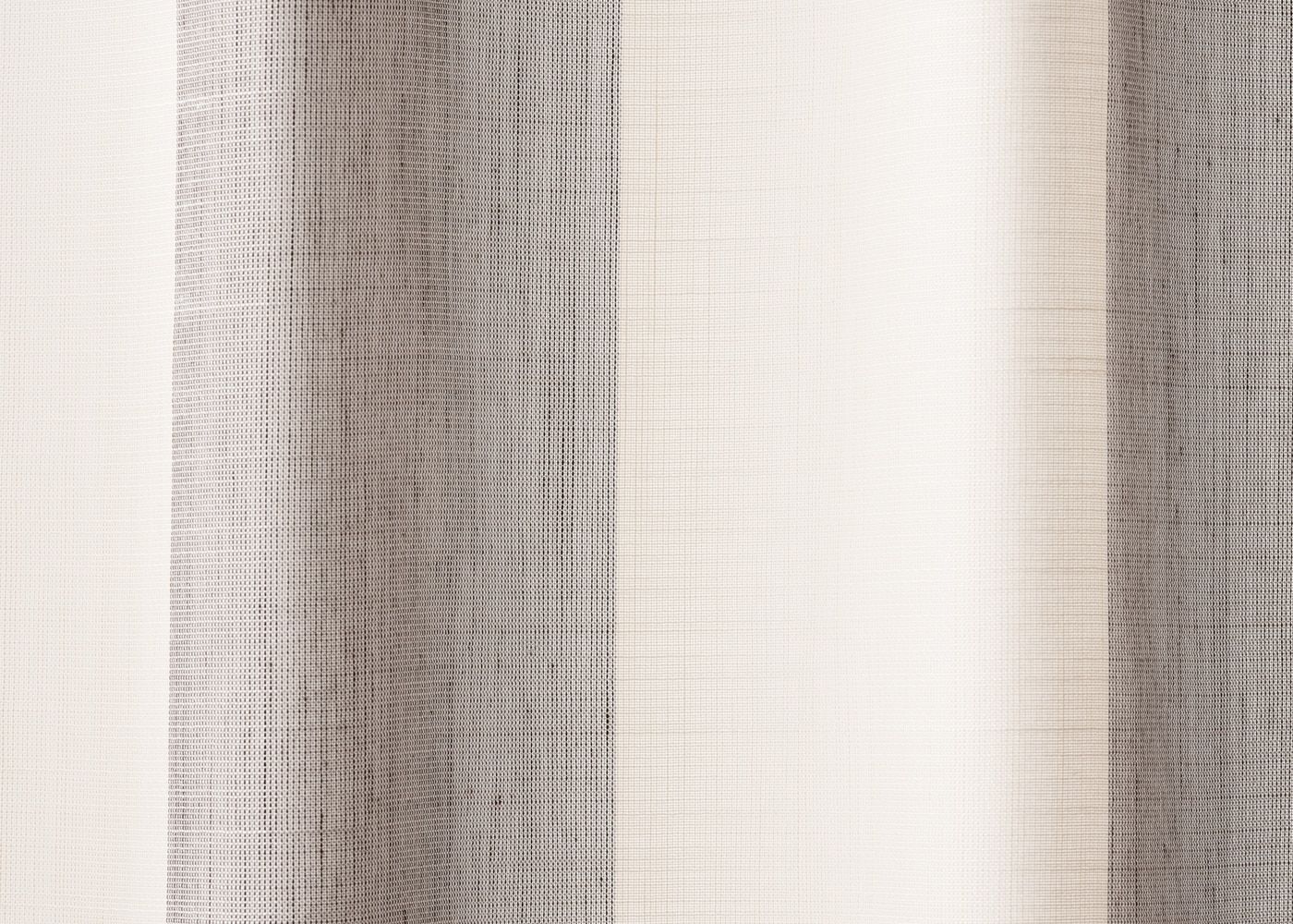 麻のような質感と穏やかなストライプ柄が魅力のレースカーテン ペレット。明るい印象のベージュと縦ラインがより楽しめるブラウンの2色展開のレースカーテンです。(写真はベージュ プリーツ1.5倍ヒダ)