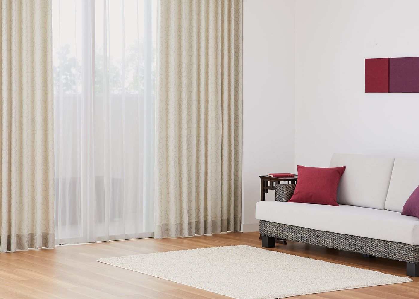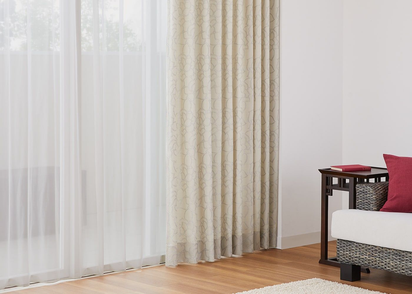 お部屋をやさしい雰囲気にしたい方には、ナチュラルのような明るい色のカーテンがおすすめです。(写真はナチュラル プリーツ1.5倍ヒダ)