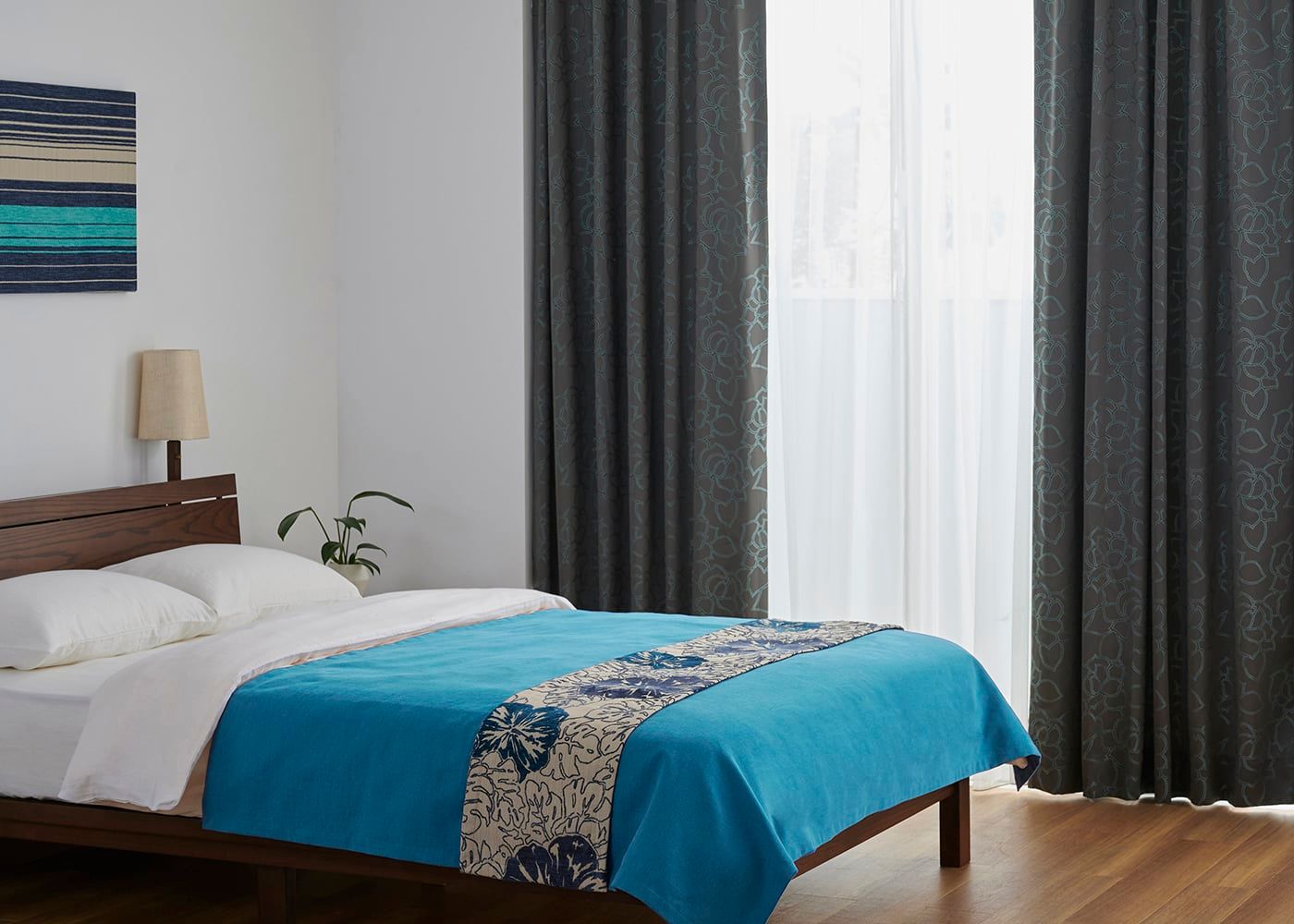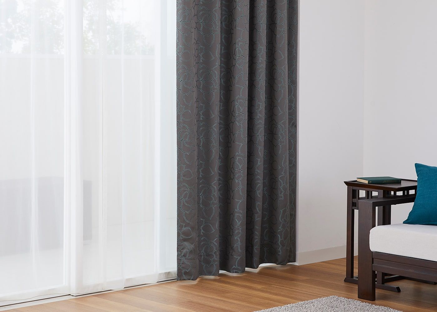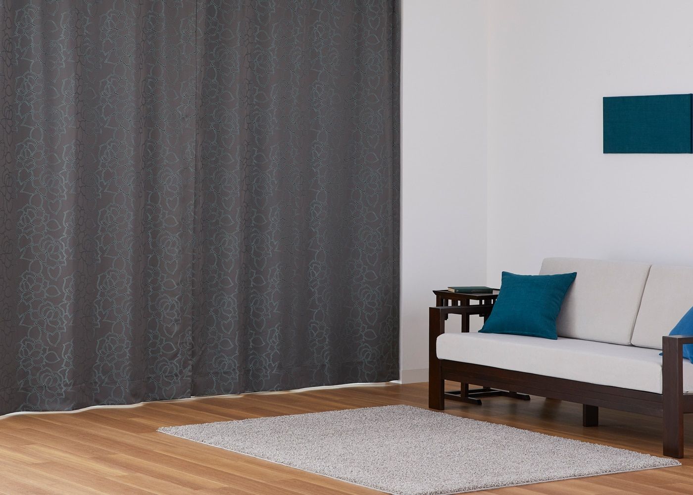 ドレープカーテン ルートは遮光カーテンでは有りませんが、生地の厚みがあるため一般的なドレープカーテンと比較して透過を防ぐため、安心してお休み頂けます。(写真はグレー ノンタック)