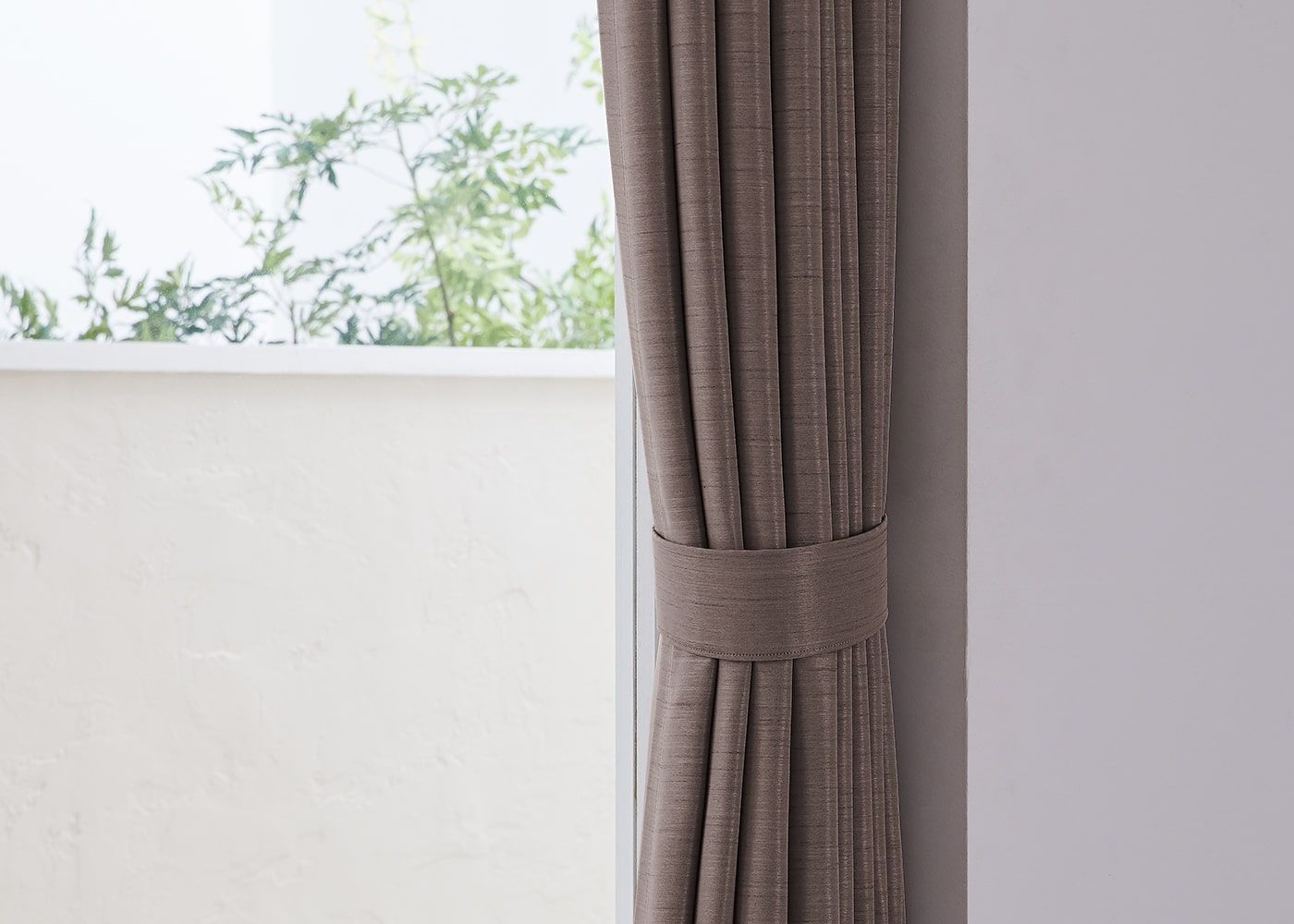 タッセルで束ねたイメージです。美しくまとまったカーテンは空間に上品なアクセントを添えます。さりげない装飾で、窓辺の印象をぐっと引き締める効果も。(写真はブラウン プリーツ1.5倍ヒダ)