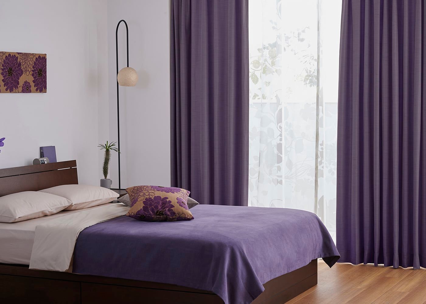 パープル×オリエンタルな寝室