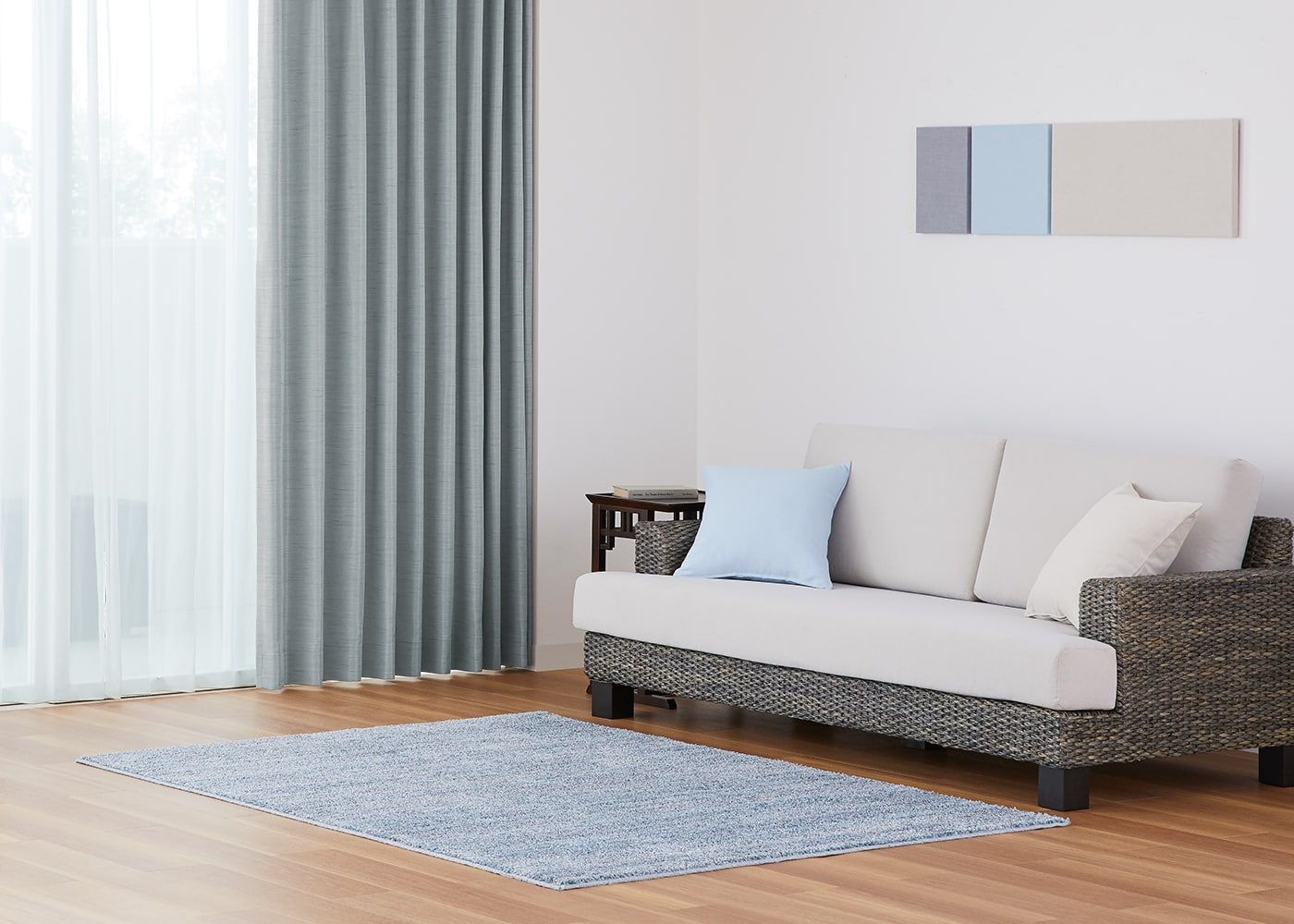 ラグにペールトーンの青を添え、