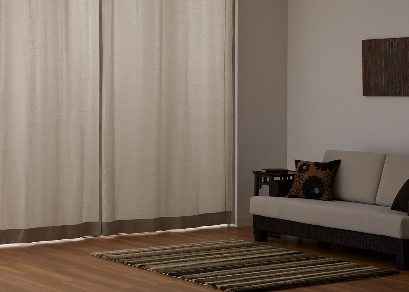 ベージュ系のカーテンや