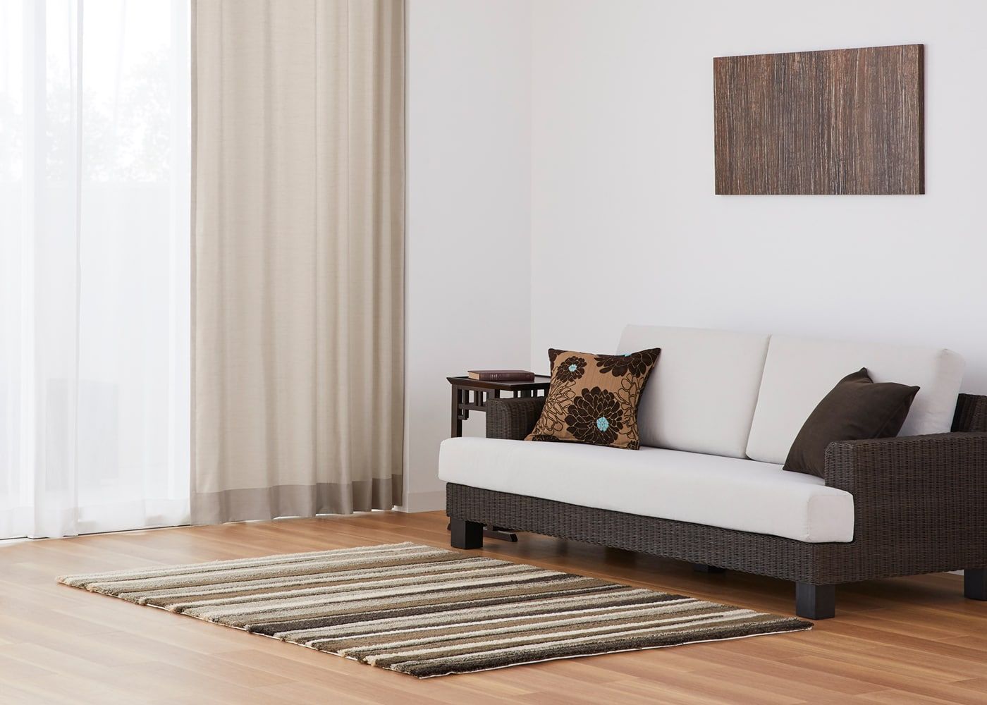 ラグを組み合わせると、アースカラーでまとめた落ち着きのある