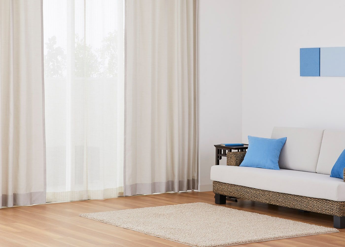 海の静けさ感じるブルーカーテン