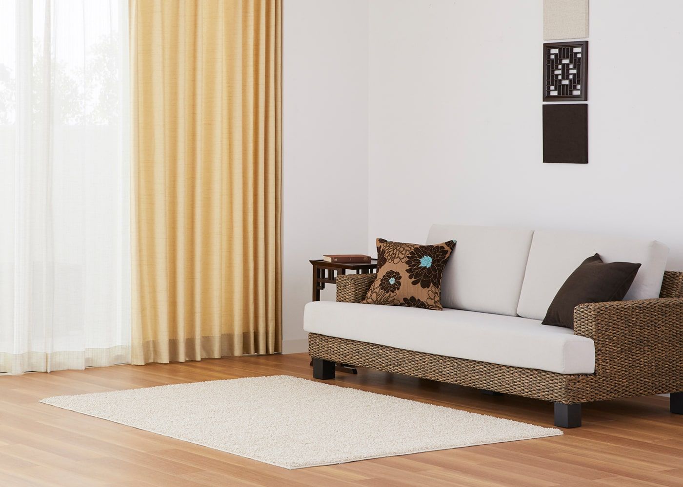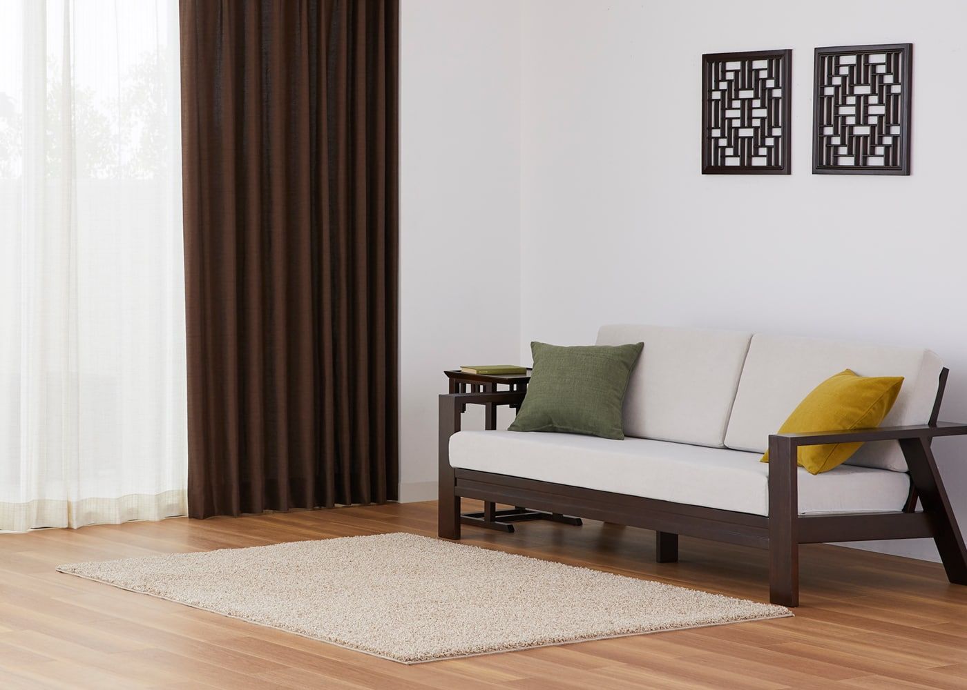 カーテンの色を明るくすることで、茶色の