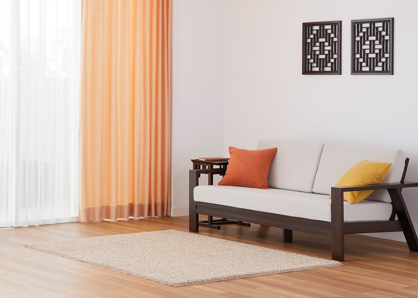 壁面装飾とオレンジの