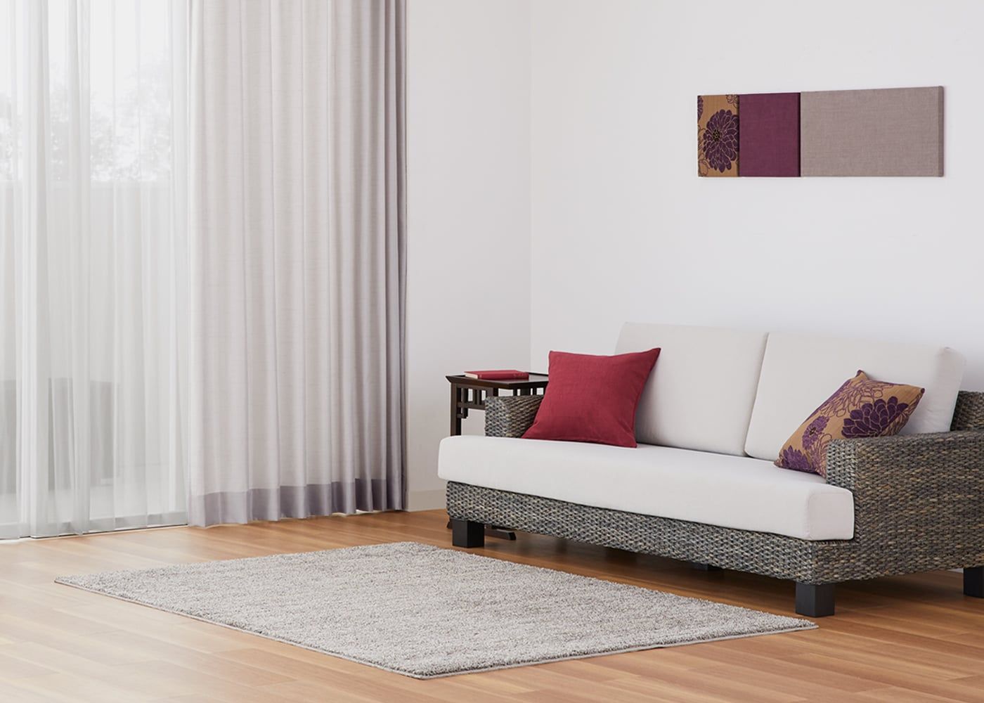 ライトパープルのカーテンは、グレー系の