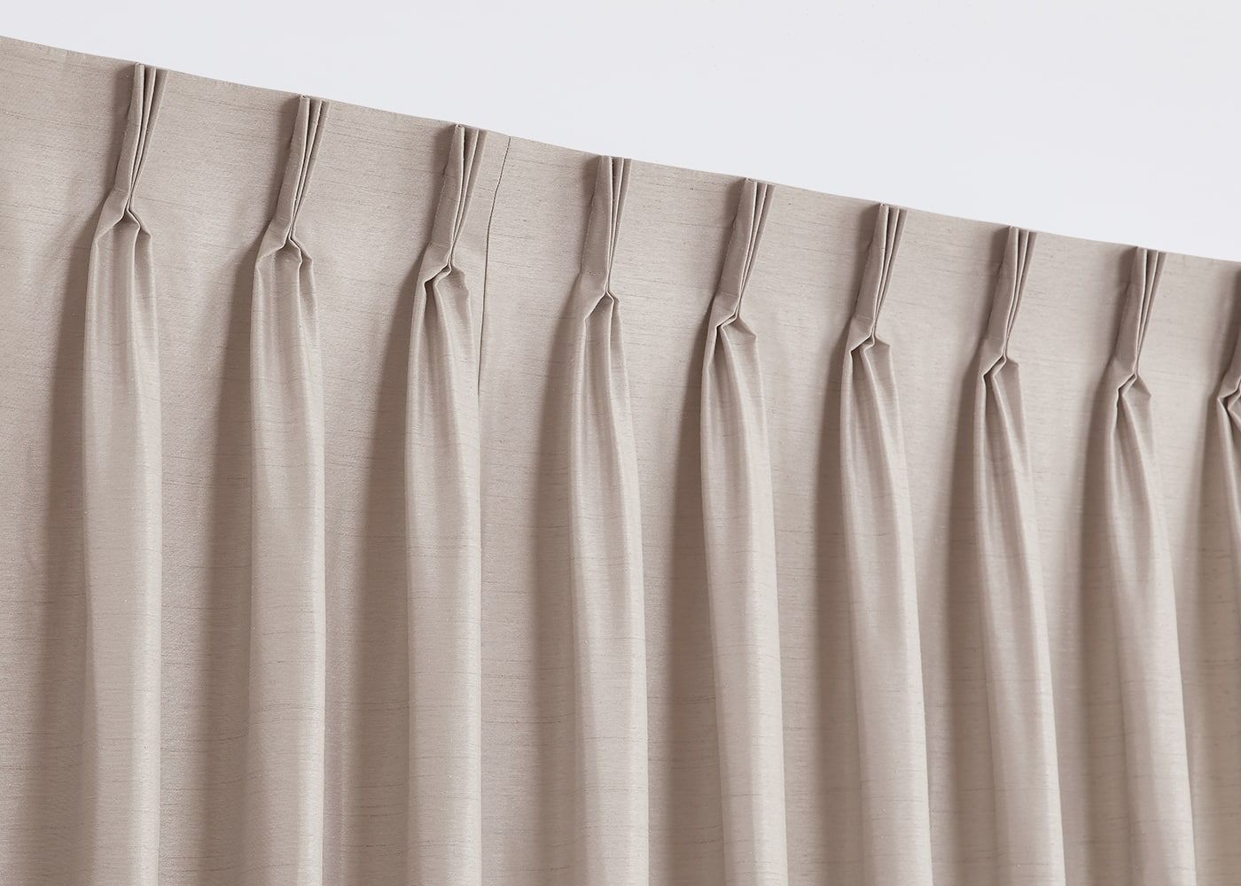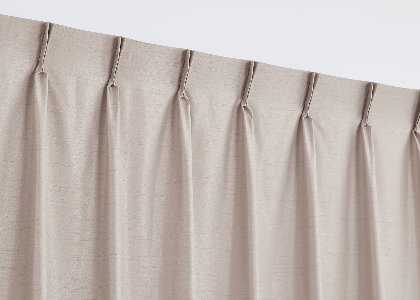 明るいカラーの中でもやや色みのあるサンドベージュは、温もりを感じるお部屋にしてくれます。プリーツ1.5倍ヒダで程よいドレープ感を演出しました。(写真はサンドベージュ プリーツ1.5倍ヒダ)