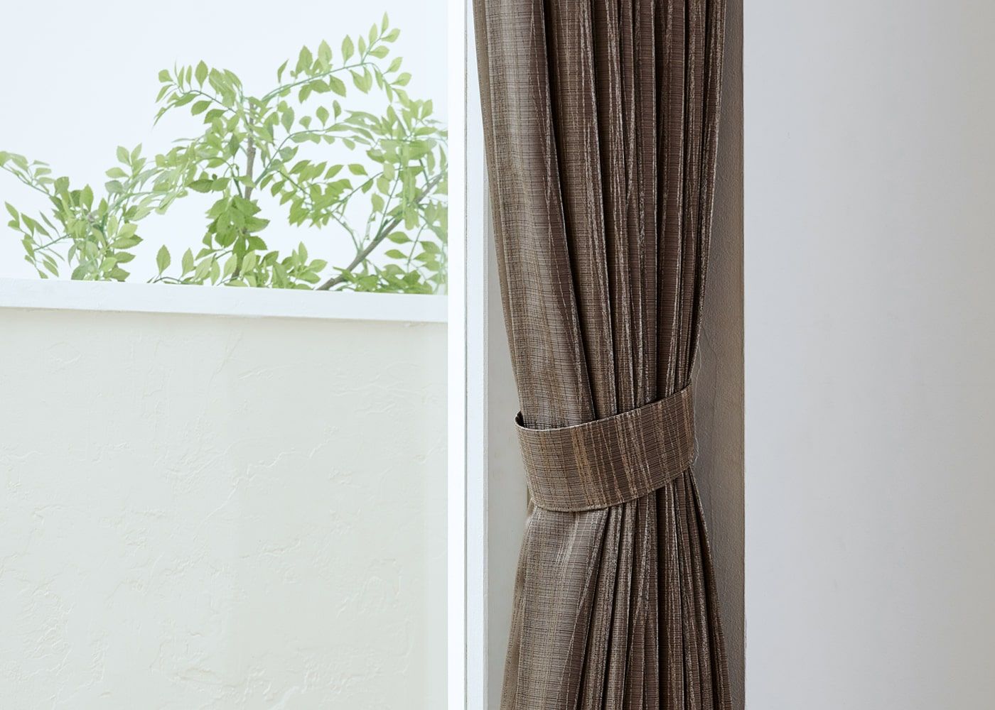 カーテンと同じ生地を使ったタッセル付きです。統一感があり、お部屋全体のコーディネートを美しくまとめます。使いやすさも考慮したデザインで、カーテンの開閉がスムーズに行えます。