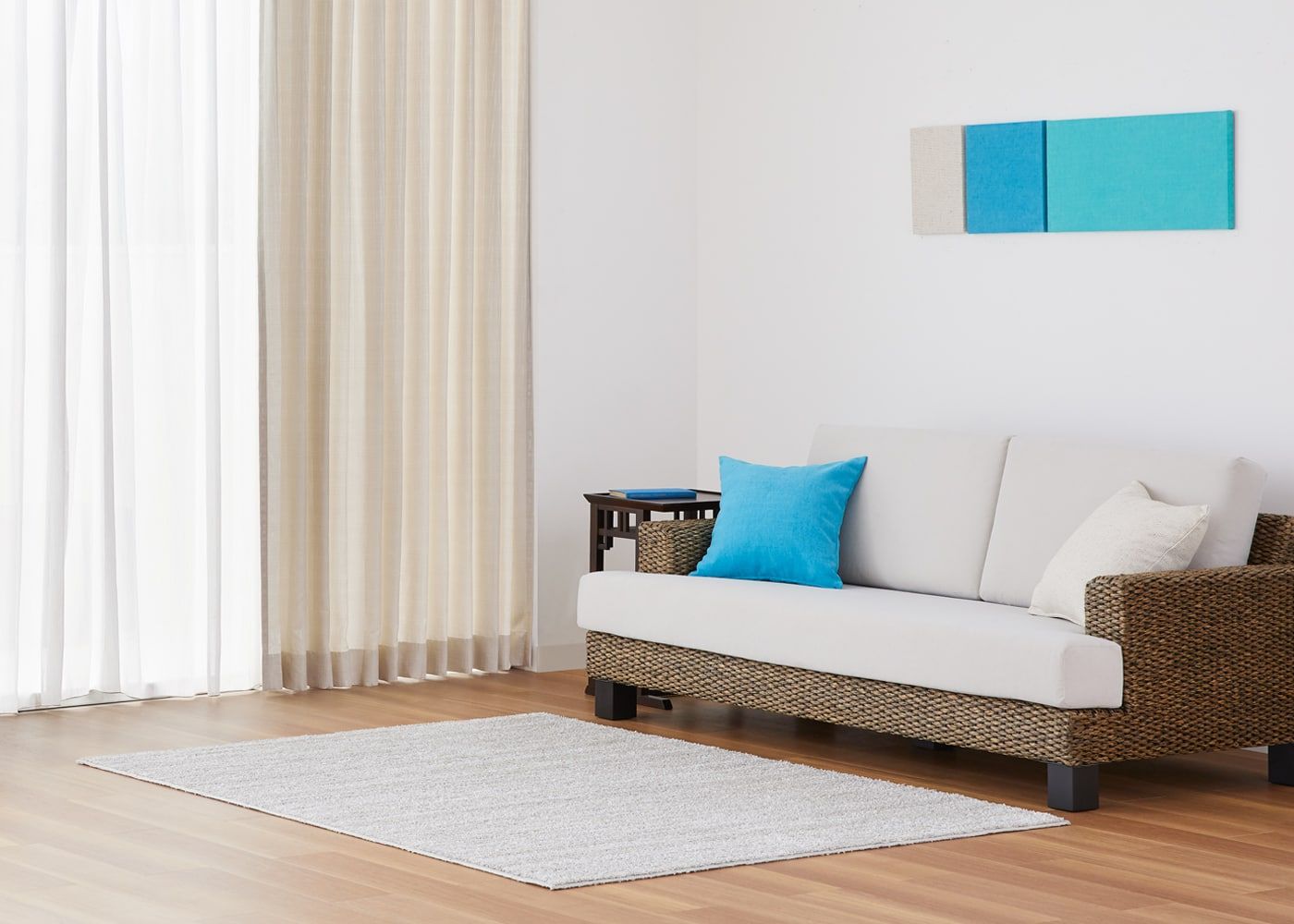 ラグを組み合わせると、爽やかなトロピカルコーディネートの完成です。(写真はアイボリー ノンタック)