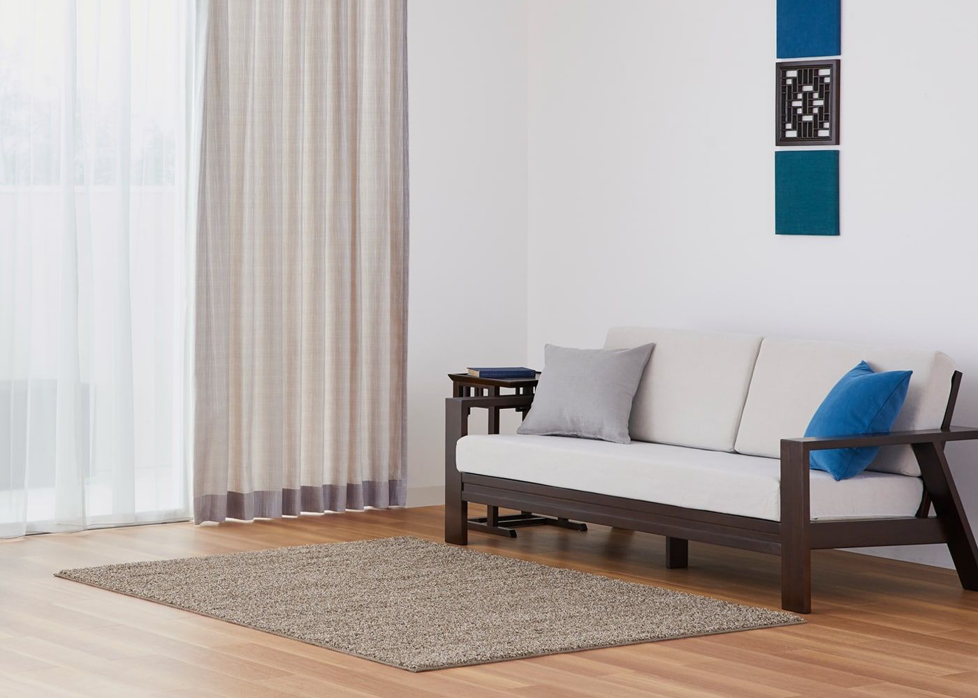 ナチュラル感のあるドレープカーテンには、ざっくりとした素材感のあるレースカーテンを合わせて、より温かみのある雰囲気を楽しめます。(写真はベージュ ノンタック。