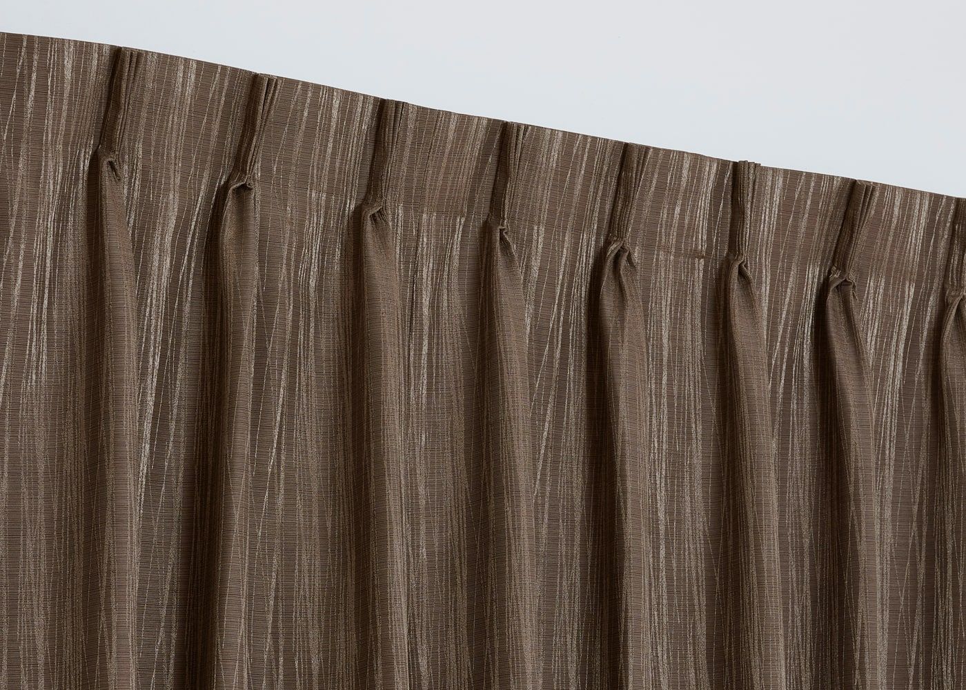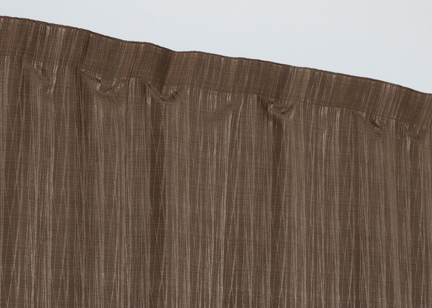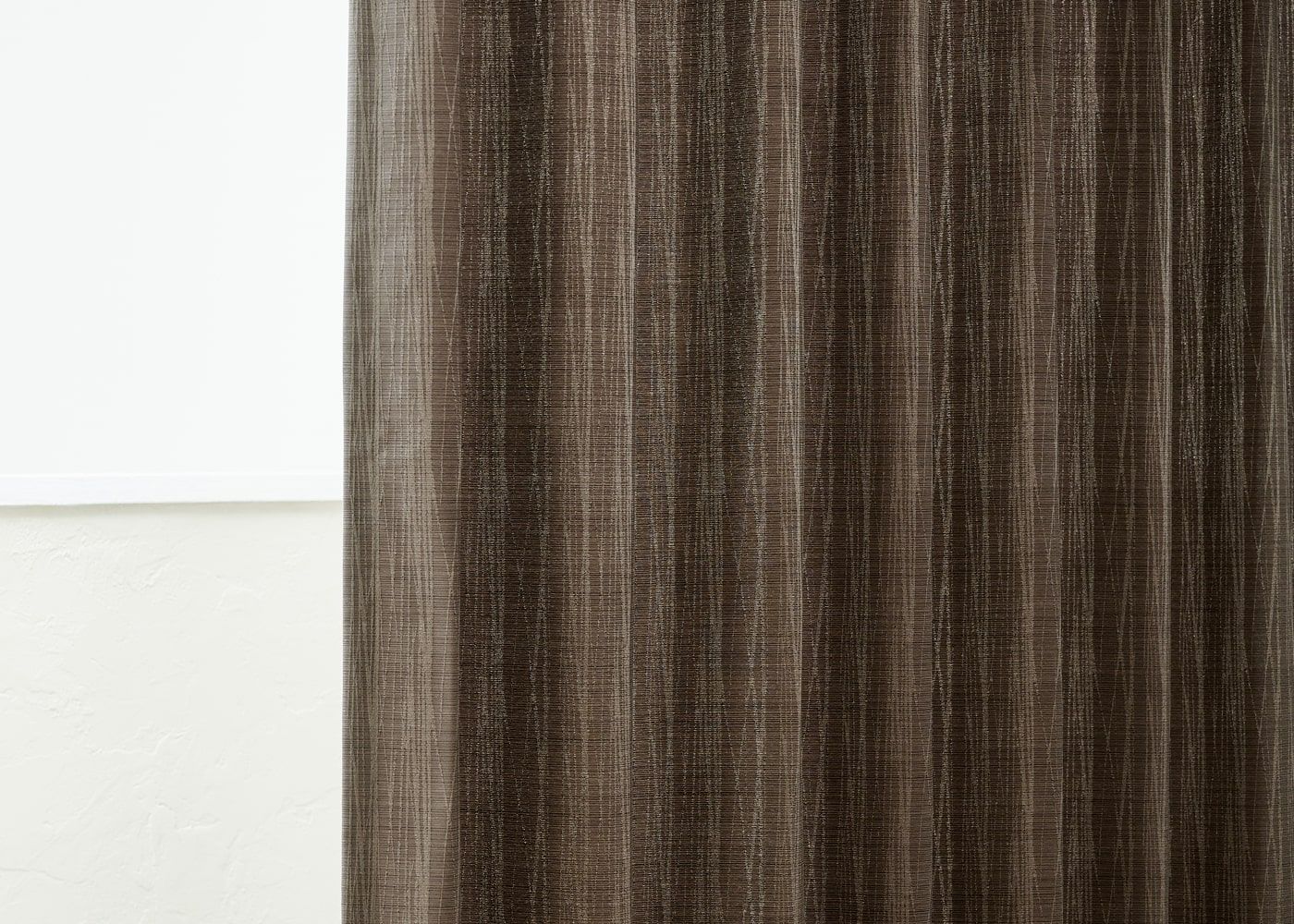 不規則な縦ラインと繊細な横ラインによって空間に上質な雰囲気をもたらすドレープカーテン バーク。落ち着きのあるダークブラウンをはじめ、アイボリー、ベージュ、ライトグレーの豊富な4色展開のカーテンです。(写真はダークブラウン ノンタック)