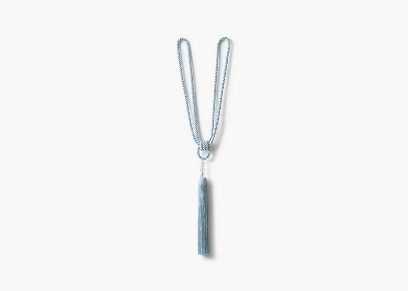 クリスタルのような輝きと繊細さが上質なインテリアを演出する装飾タッセル クリスタルテール。さまざまな色のカーテンに合わせやすい5色をご用意。カーテンの色に合わせて取り入れるだけで、お部屋の印象を変えてくれるアイテムです。(写真はライトブルー)