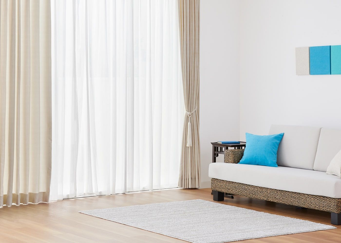 お部屋に上品でやさしい印象をプラスしてくれるアイボリーのカーテンには、ホワイトがぴったりです。