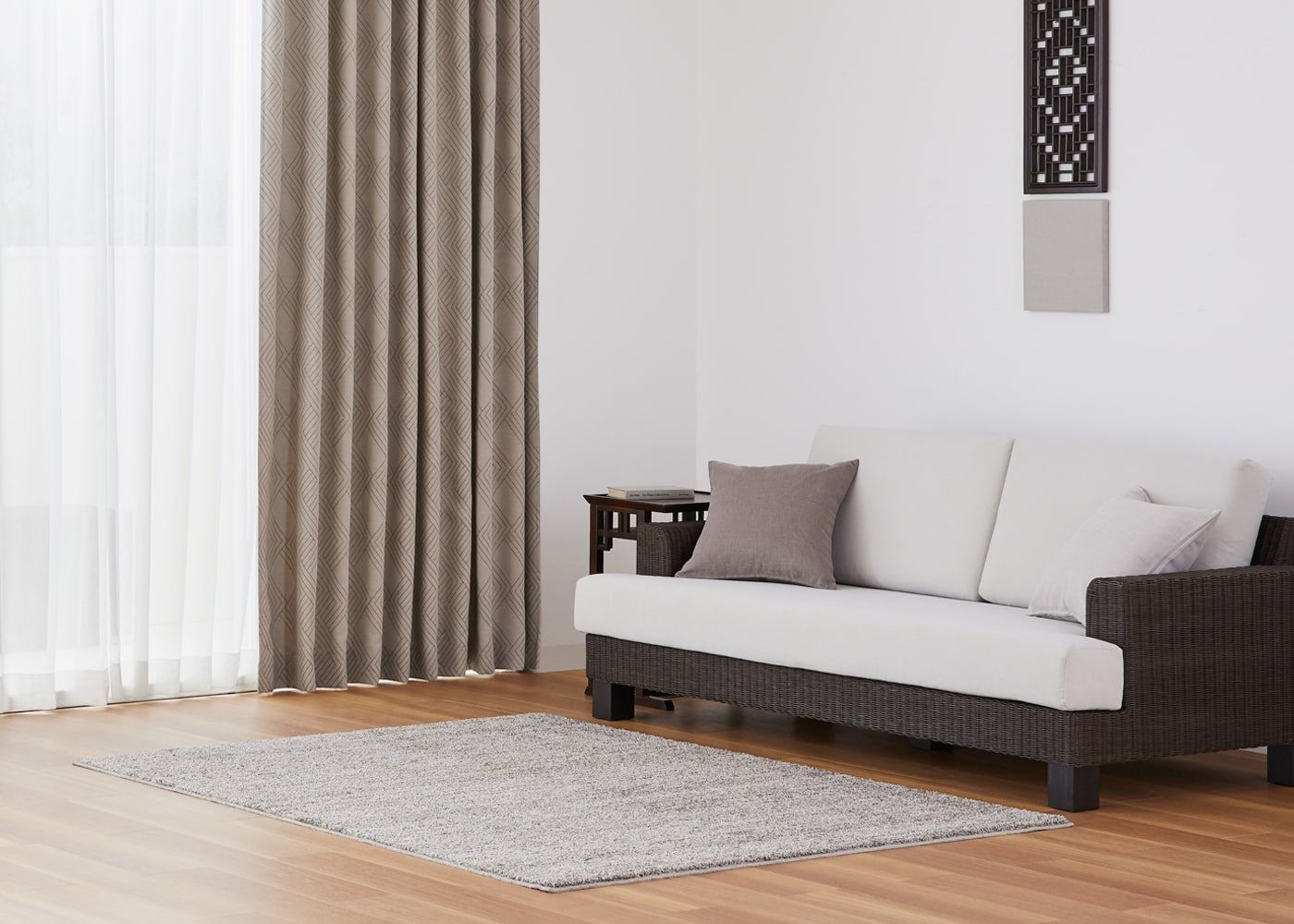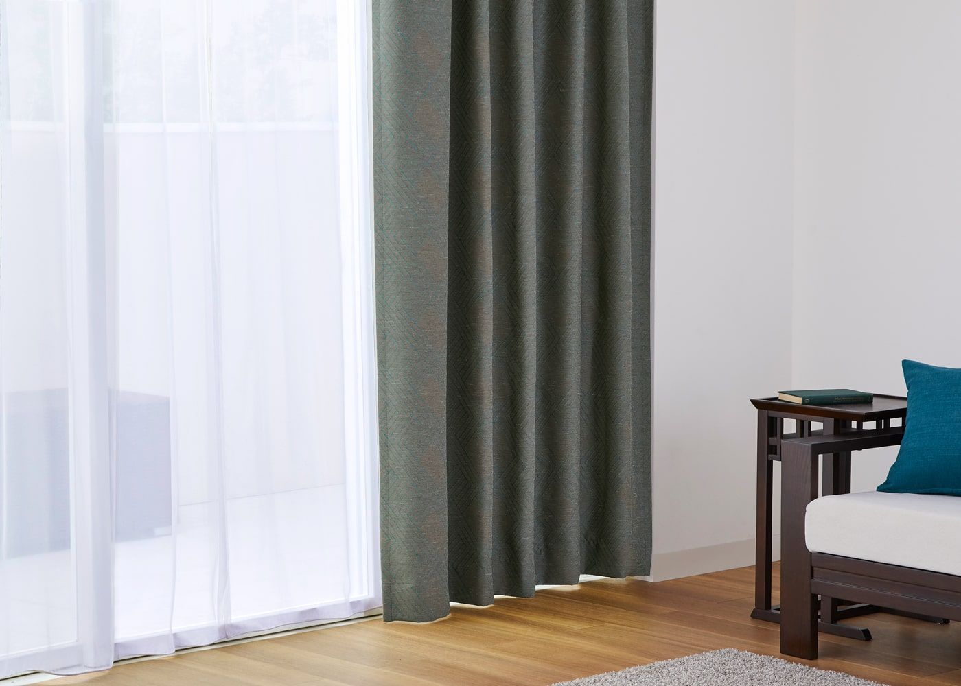 ファブリック全体に繊細なラインで幾何学模様を描いたエターナル。遮光率99%以上でしっかりと日差しを遮るため、西日の強いお部屋や寝室に最適です。保温性や断熱性にも優れており、冷暖房の効率を高めてくれるのも特長です。また、室内の人影がカーテンに写りにくいため、プライバシーにも配慮できます。