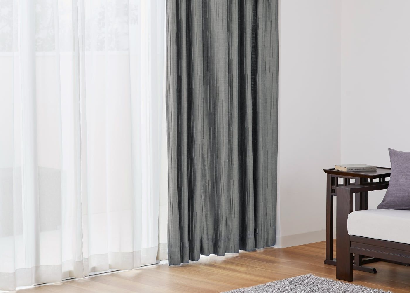 ランダムに走る縦ラインとタイシルクのような高級感に心惹かれるドレープカーテン アルコ。