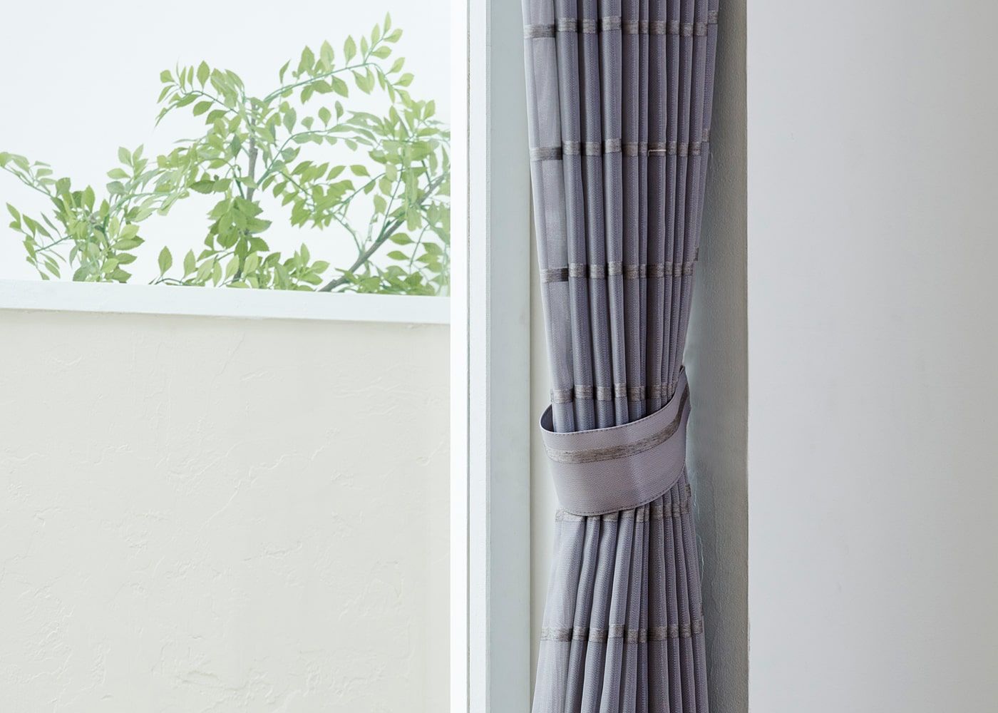 カーテンと同じ生地を使ったタッセル付きです。統一感があり、お部屋全体のコーディネートを美しくまとめます。使いやすさも考慮したデザインで、カーテンの開閉がスムーズに行えます。