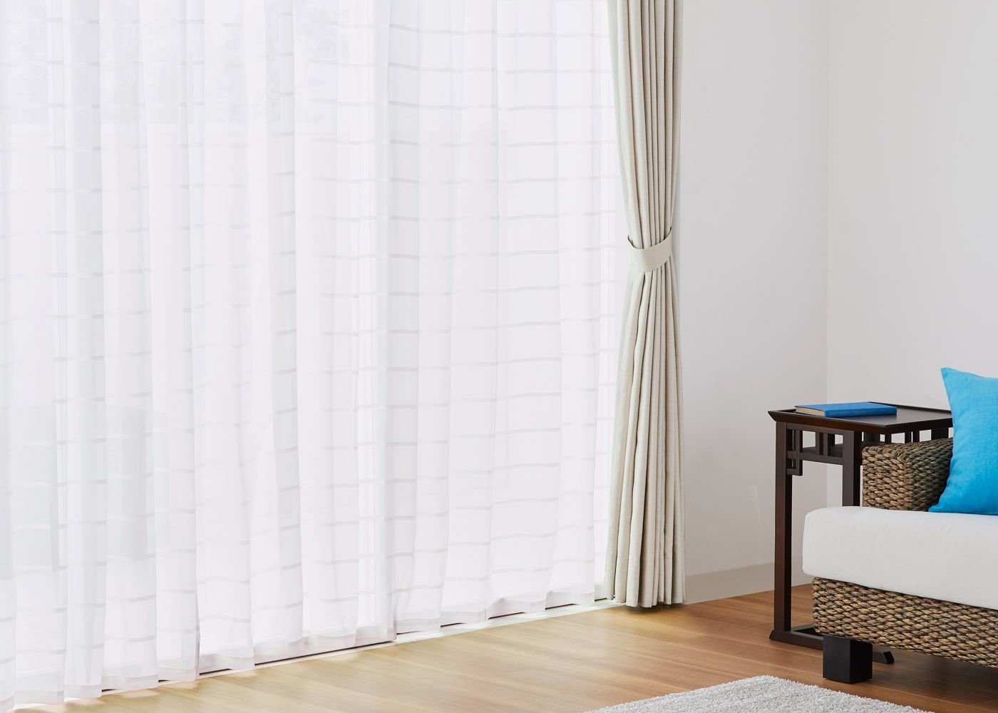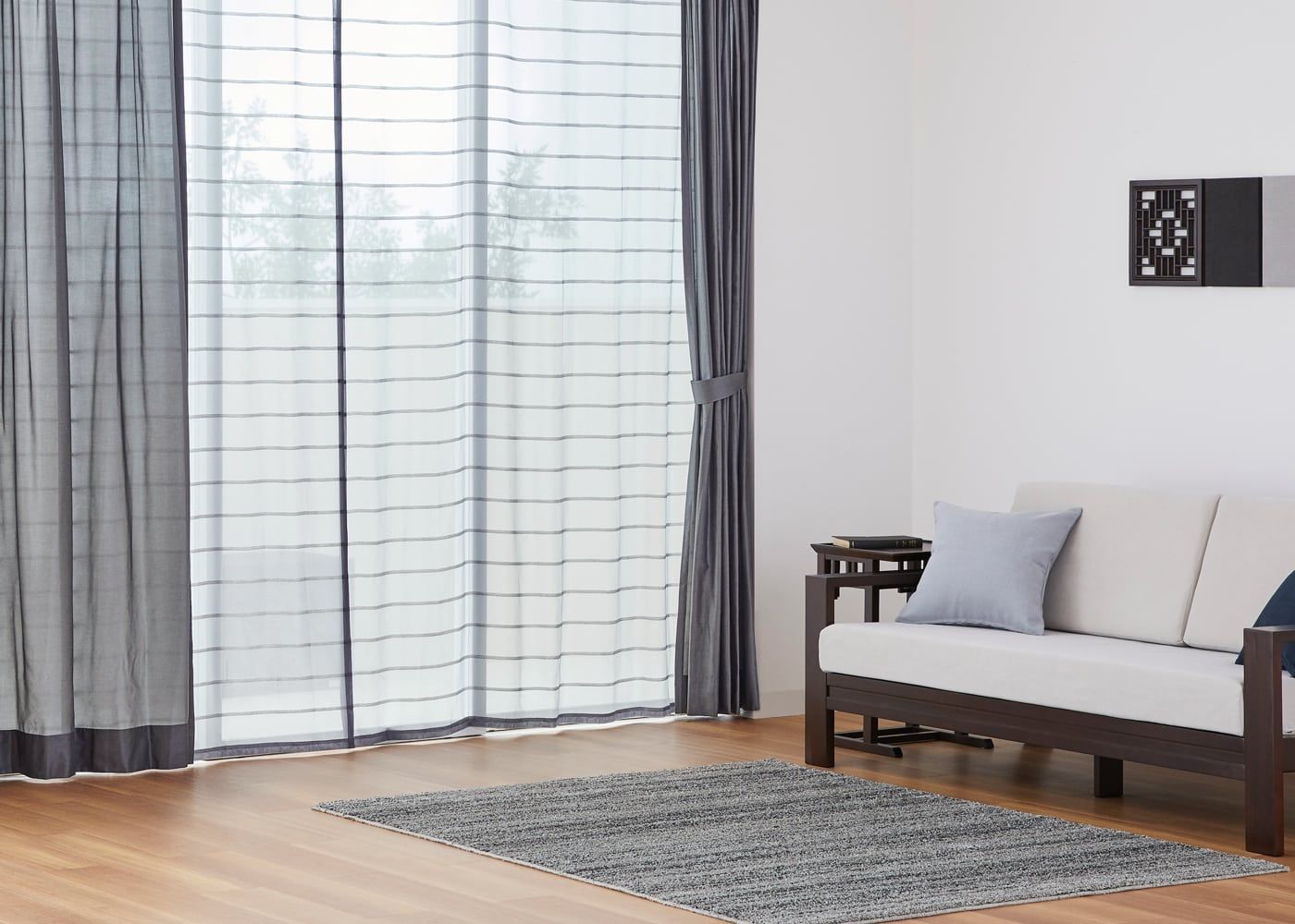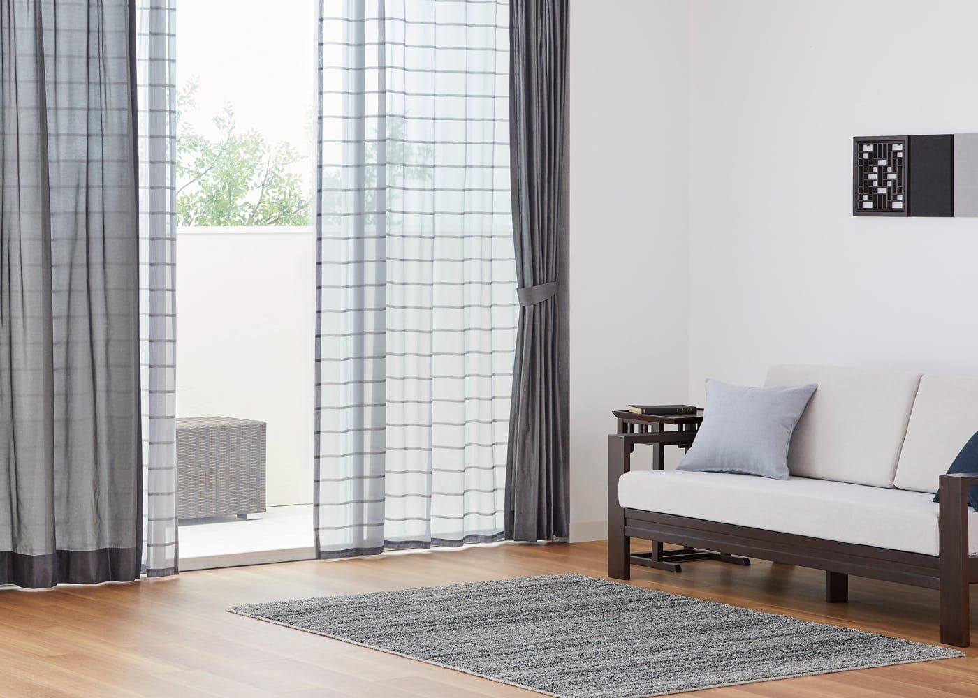 外からの光がカーテンを透過することで、空間を洗練された雰囲気にしてくれます。無彩色のカーテンや