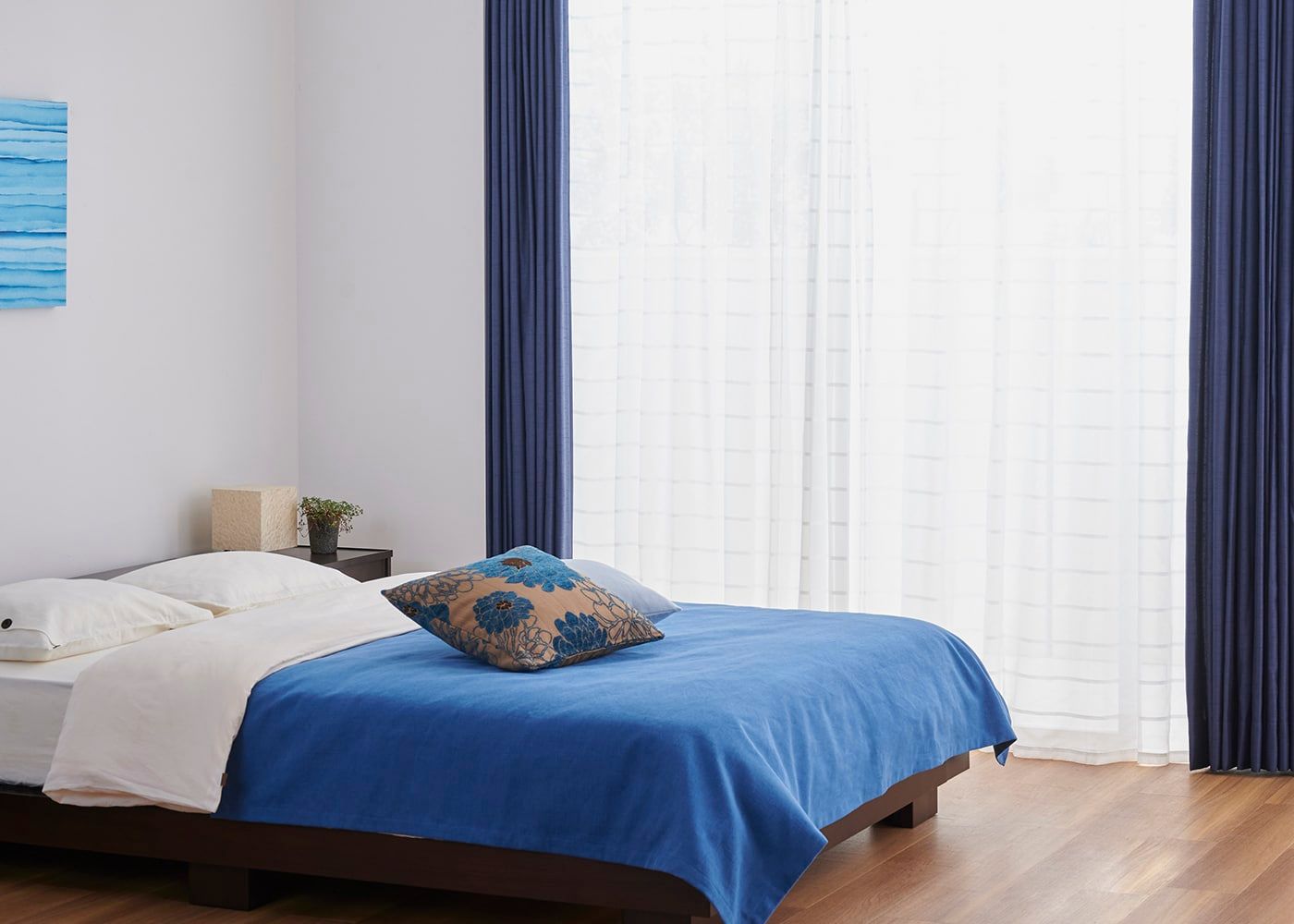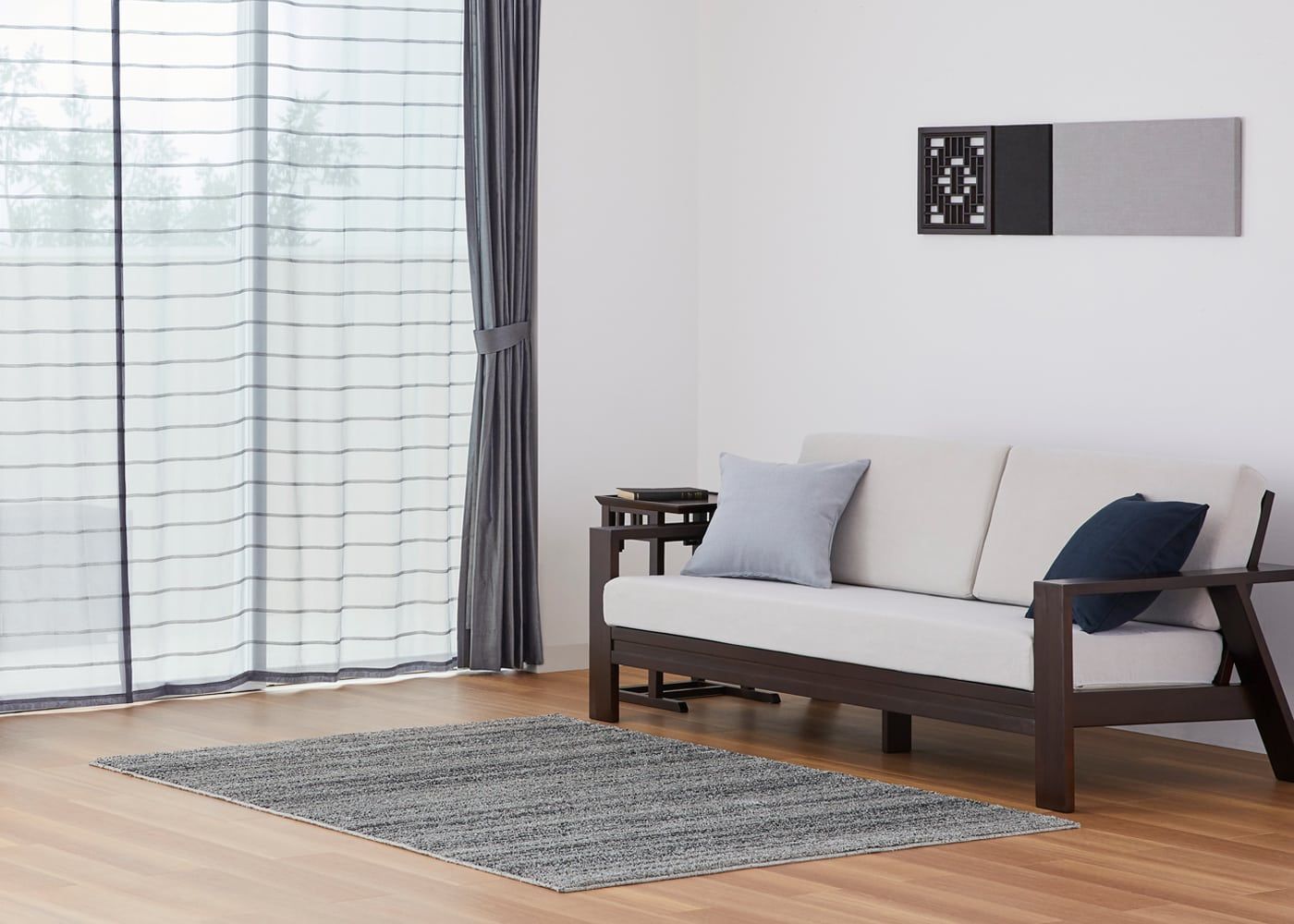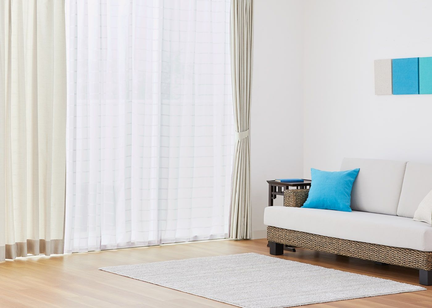外からの光がカーテンを透過することで、空間を洗練された雰囲気にしてくれます。無彩色のカーテンや