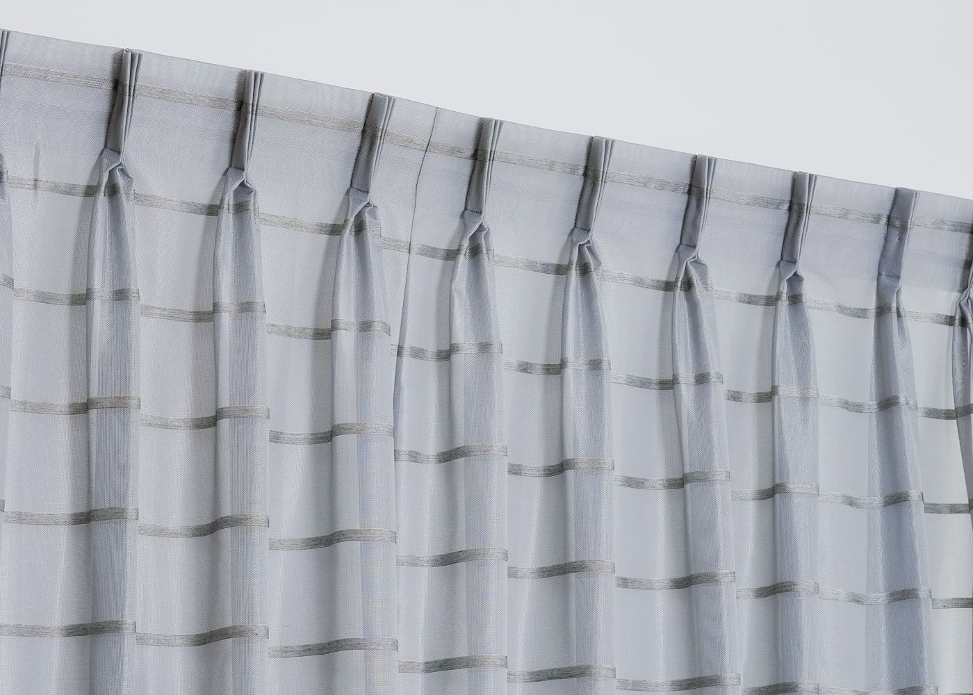 カーテンはプリーツ2倍ヒダ、1.5倍ヒダ、ノンタックの3種類。プリーツ2倍ヒダは、生地を贅沢に使いボリューム感と高級感を演出。ヒダによる空気の層で保温・断熱効果も期待できます。(写真はシルバー プリーツ2倍ヒダ)
