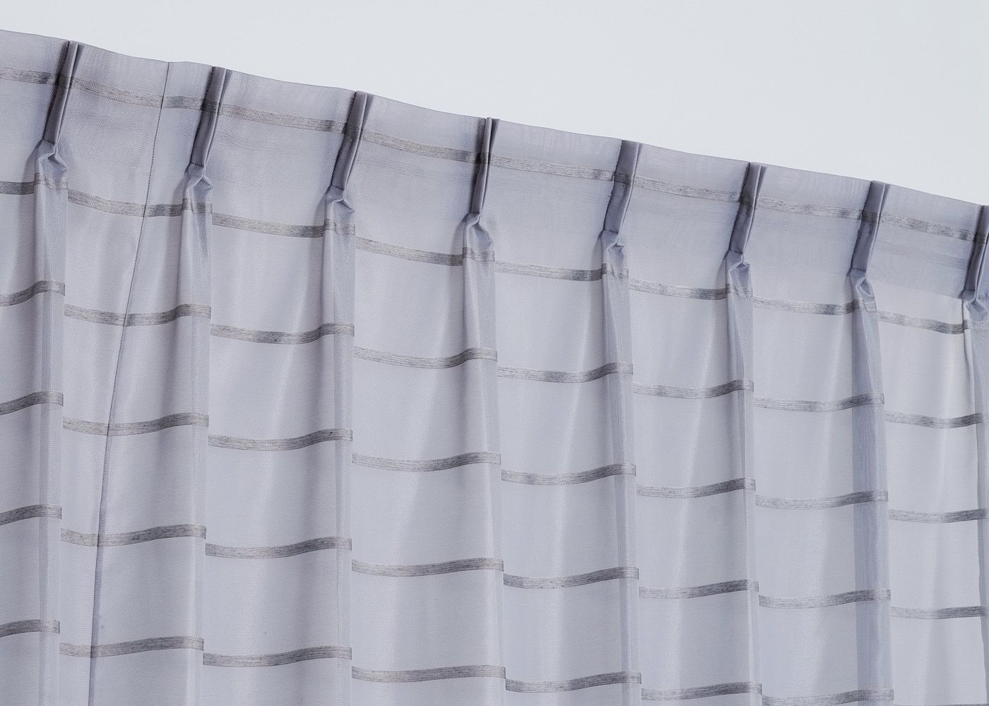 ノンタックはヒダを作らず、生地の表情や柄を活かせるシンプルなカーテン。どんな空間にもなじみやすく、使用生地が少ないため手頃な価格で注文可能です。(写真はシルバー ノンタック)