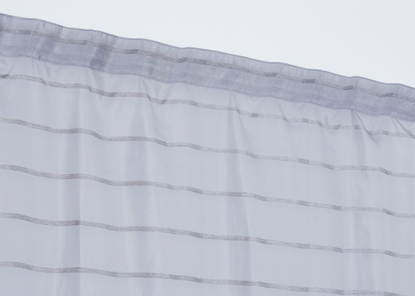 ラストは、ステンレスメッシュのようなクールな素材感が魅力のファブリック。シンプルな横ラインのデザインながらも、ライン部分の光沢がアクセントとなり、ベース部分との織りの密度や光沢の違いが楽しめる1枚です。(写真はシルバー)