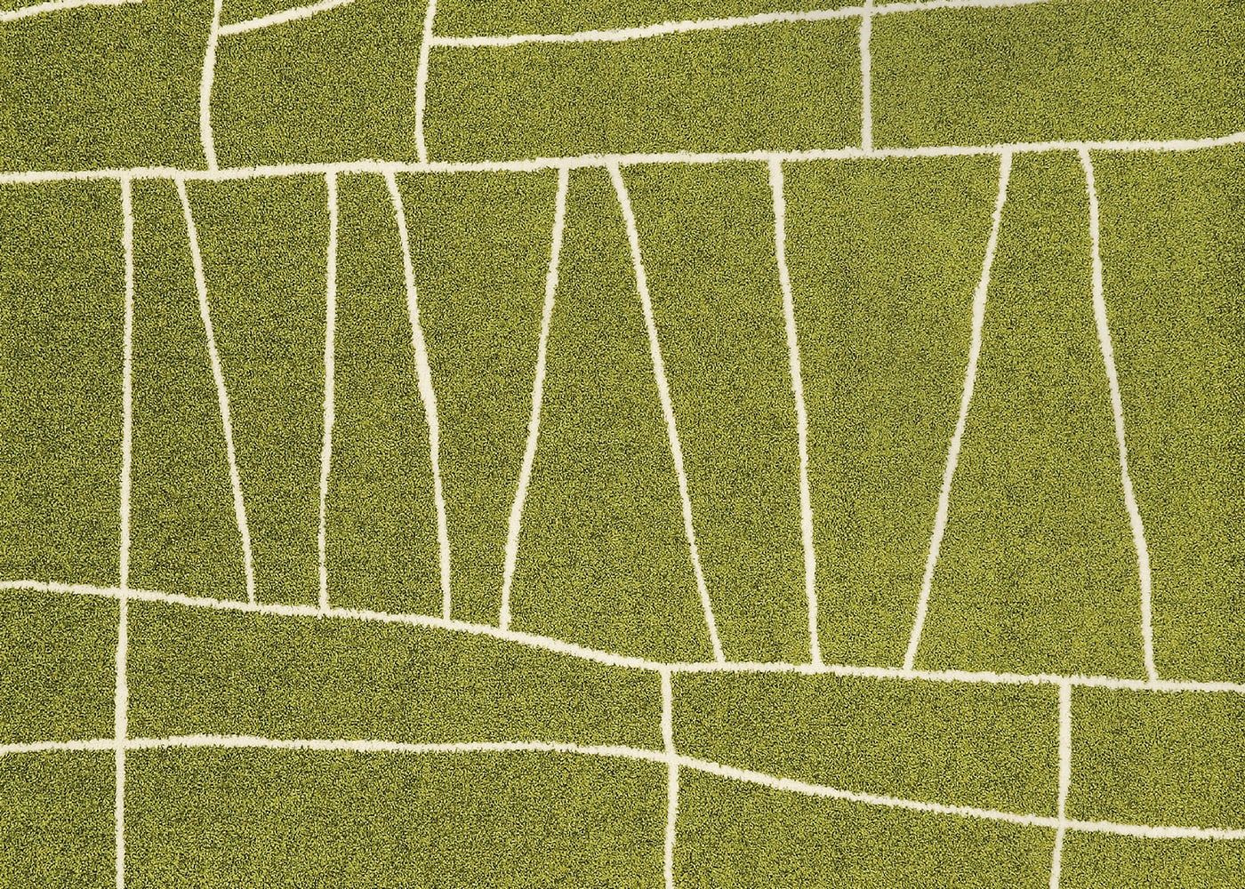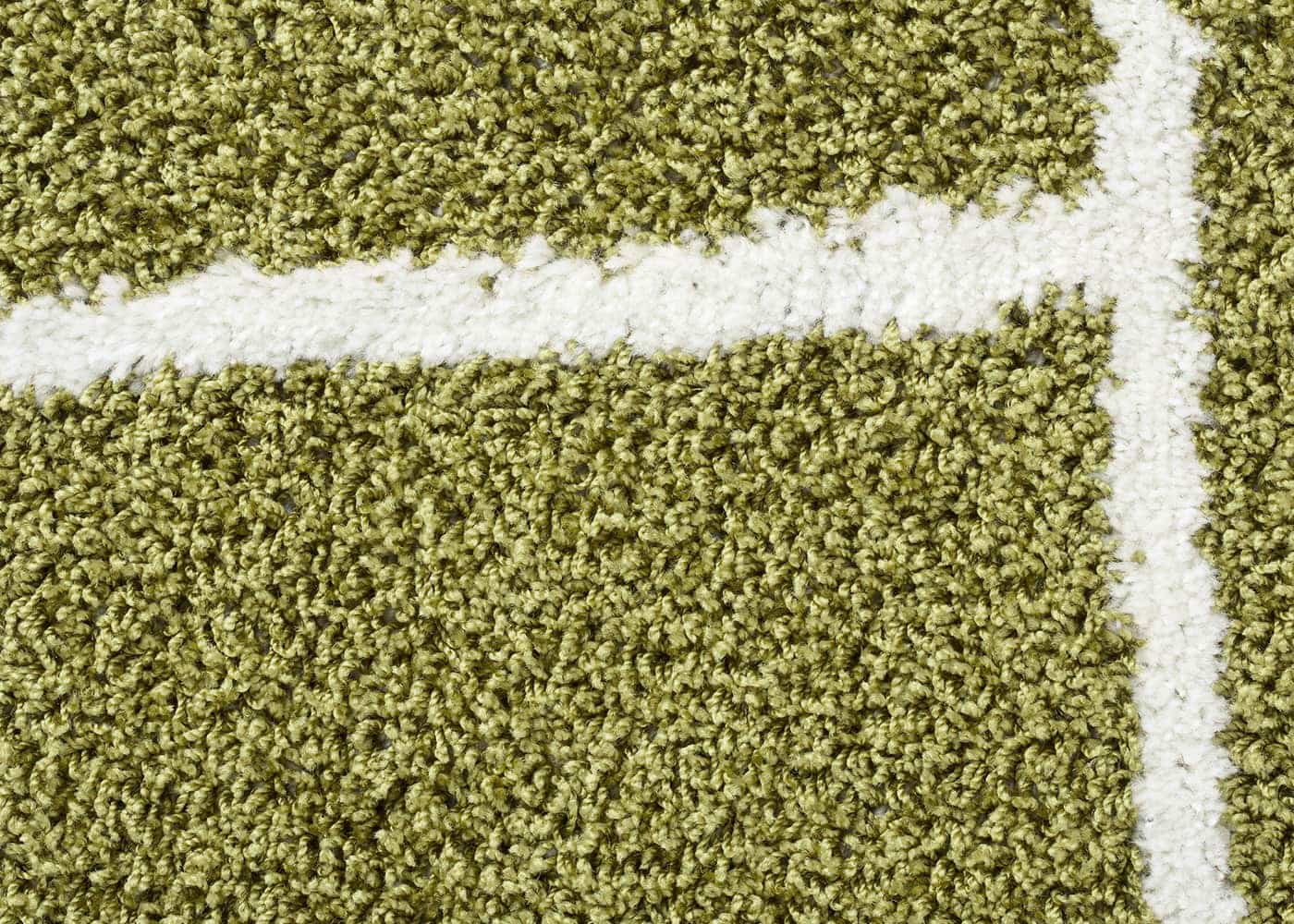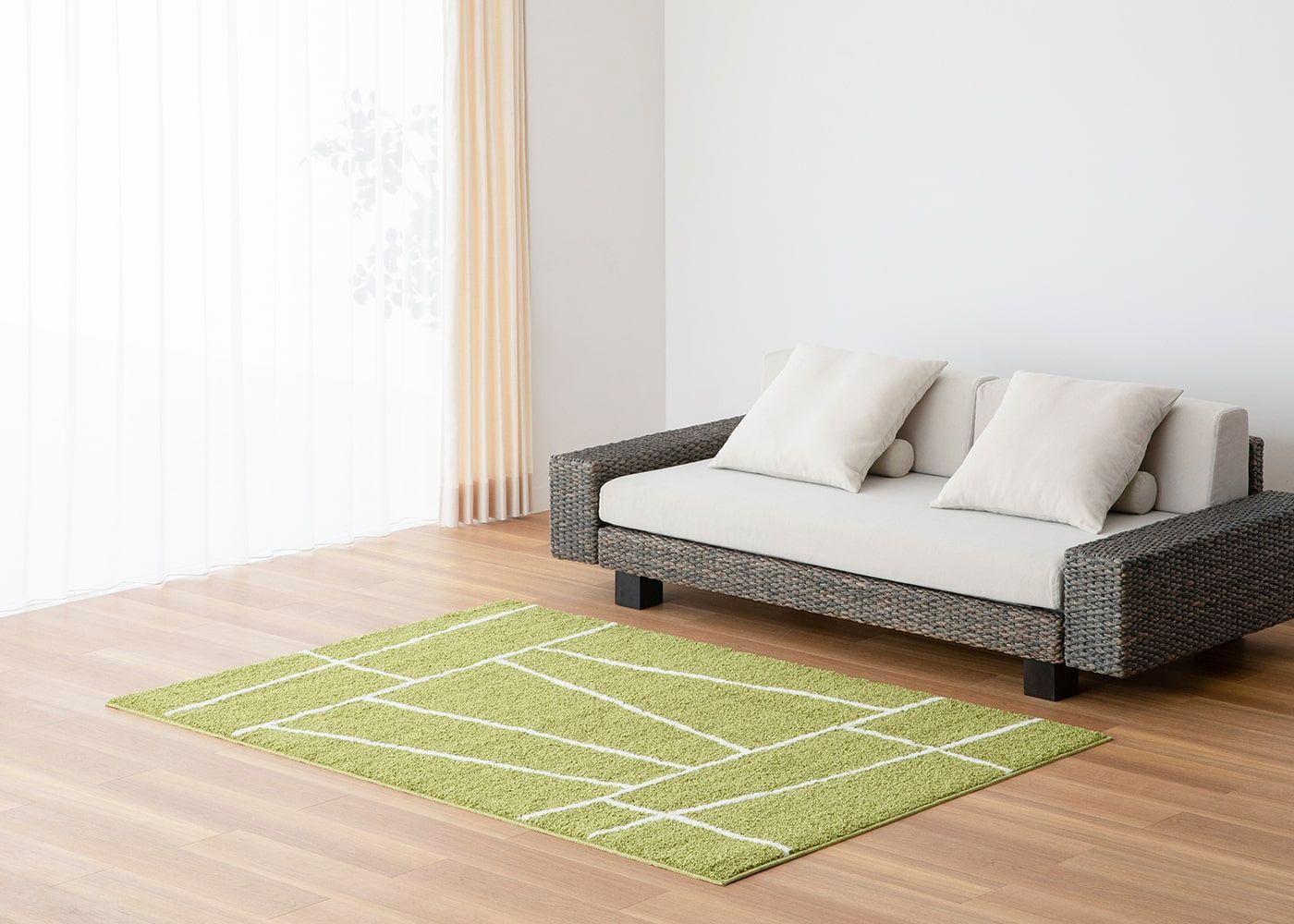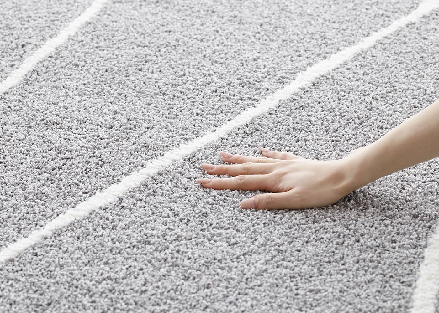 白い線と背景部分は同じ15mmのパイルでも糸の撚り方を変えて、触り心地とデザインがより際立つ設計に。日差しを浴びることで、陰影や立体感のあるおしゃれな雰囲気を楽しめます。