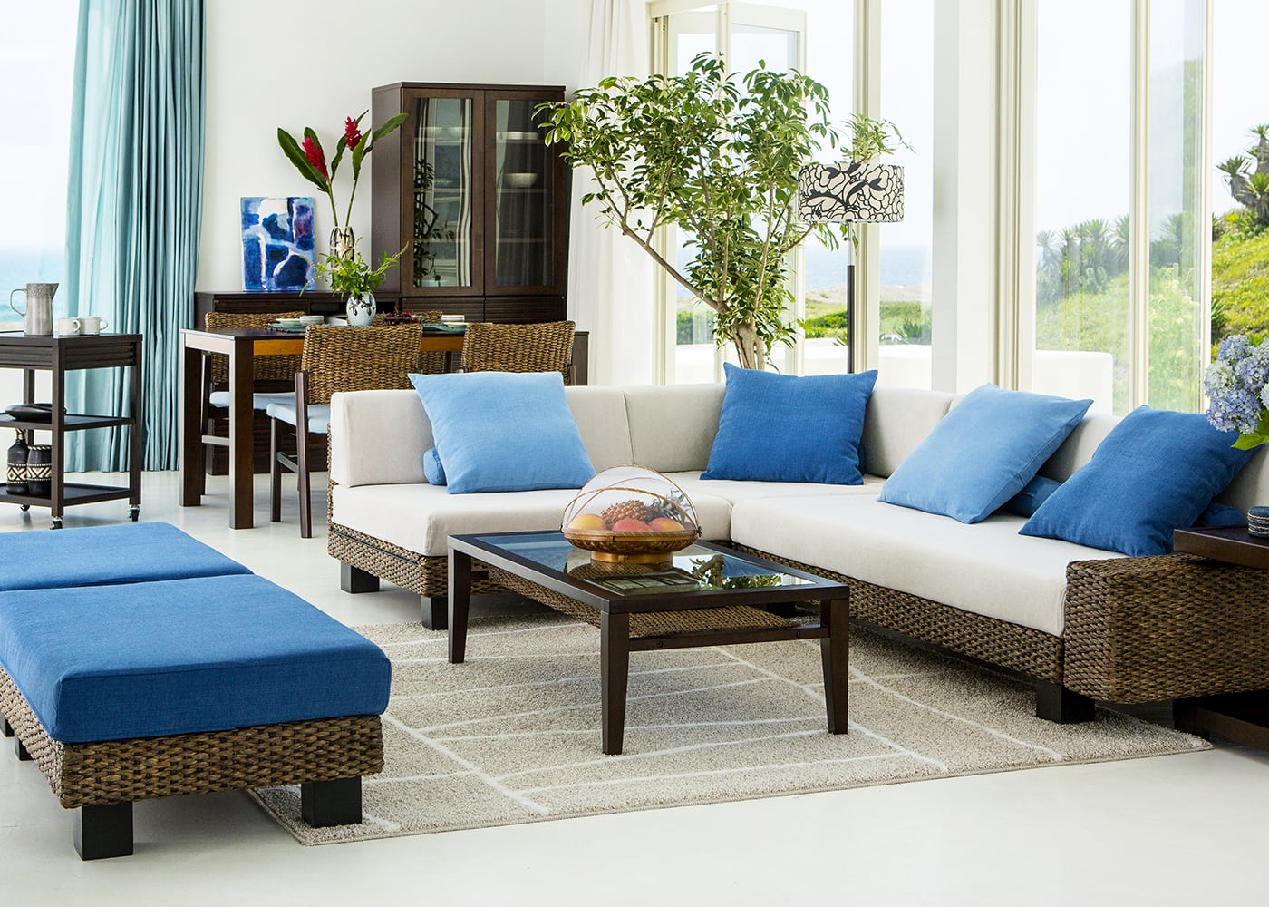 ヒヤシンスソファと合わせれば、自宅にいながらシーサイドリゾートのような空間で過ごせるでしょう。(写真はベージュ 1900×1900mm)