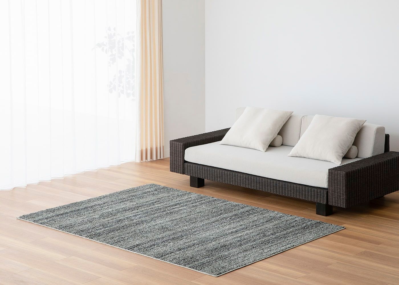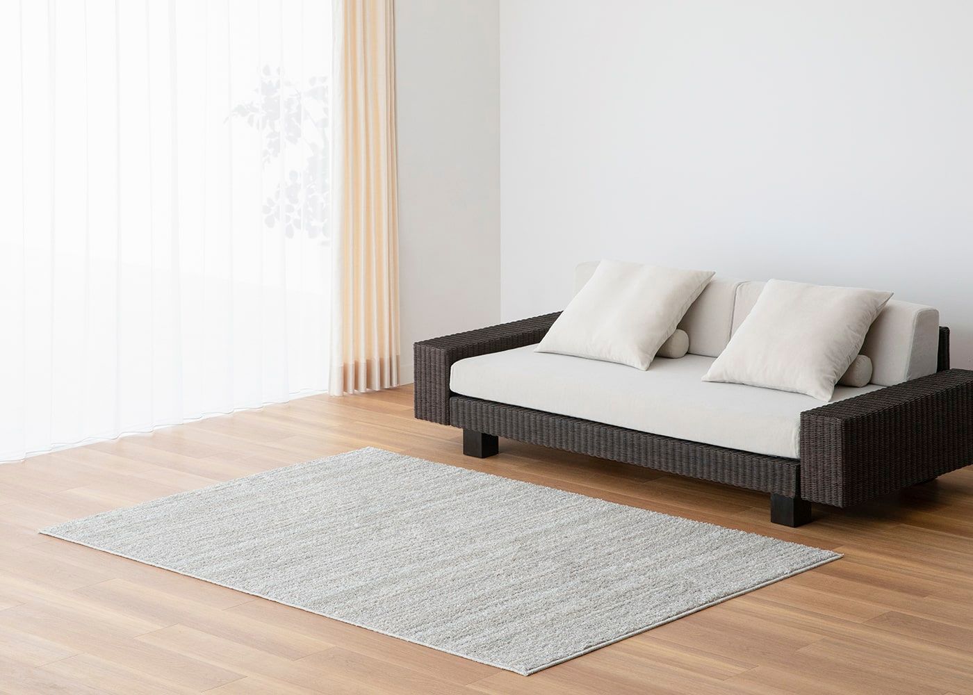 グレーで統一した空間にまとまりを作るライトグレー。自然なランダム感のあるラグが、グレーで彩ったリビング引き立ててくれます。(写真はライトグレー 2000×2500mm)