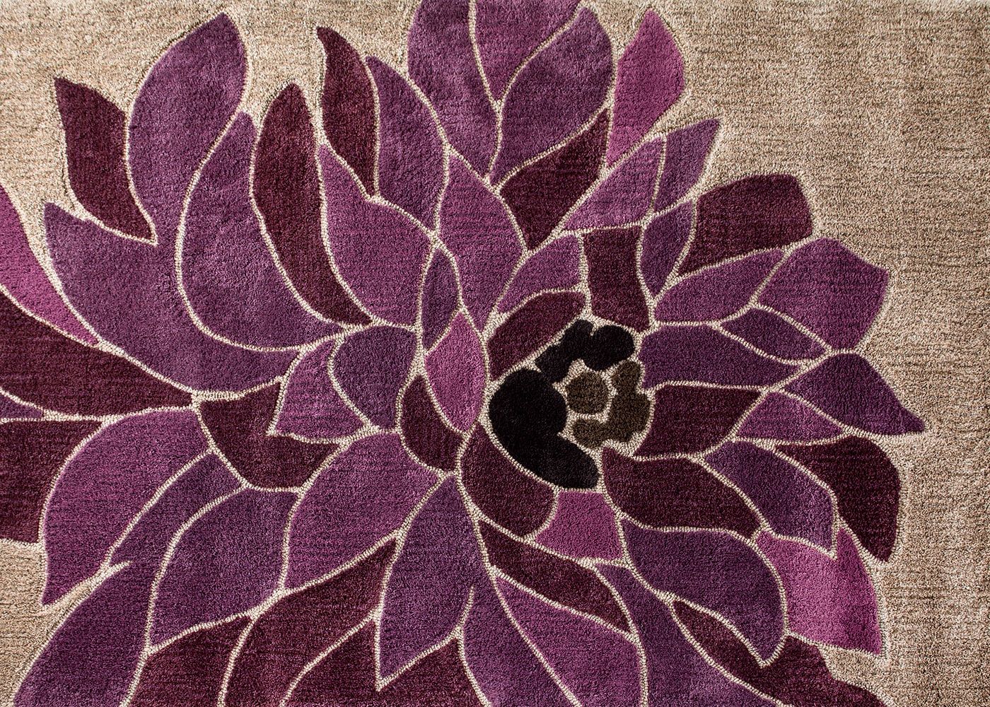 アジアの蓮の花をイメージしたa.flatオリジナルラグ。紫のグラデーションとラインで花柄を際立たせ