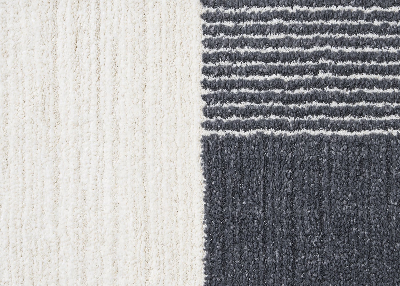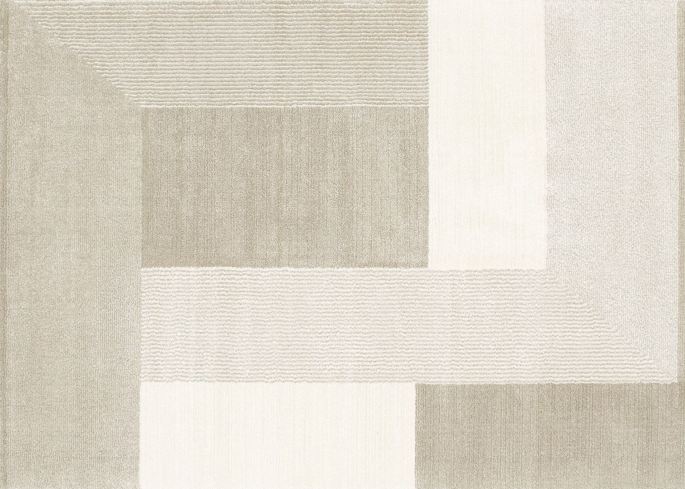 ⼿織りのような⾵合いと繊細な織り模様を機械織りで表現したウィルトン織りで作られたレクタ。グレーからホワイトの美しいグラデーションを用いた配色が特長です。
