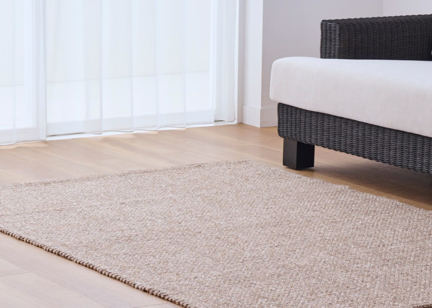 平織りラグならではの繊細な織り目が、シンプルな中にも温かみのある雰囲気をもたらします。