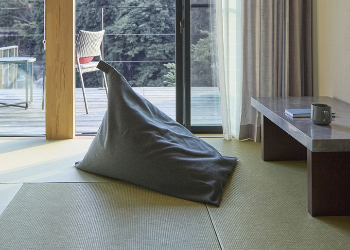 和室にクラウドグレー・スタイルを取り入れたい時は座椅子や琉球畳がお薦めです。座椅子カバーは「CLグレー」を用いて、グレーの琉球畳を敷き詰めることで一味違った和室を作れます。また、間仕切りの収納、照明や壁面装飾、ウッドブラインドを縦と横の格子柄で統一すれば、クラウドグレー×和の佇まいが演出できます。