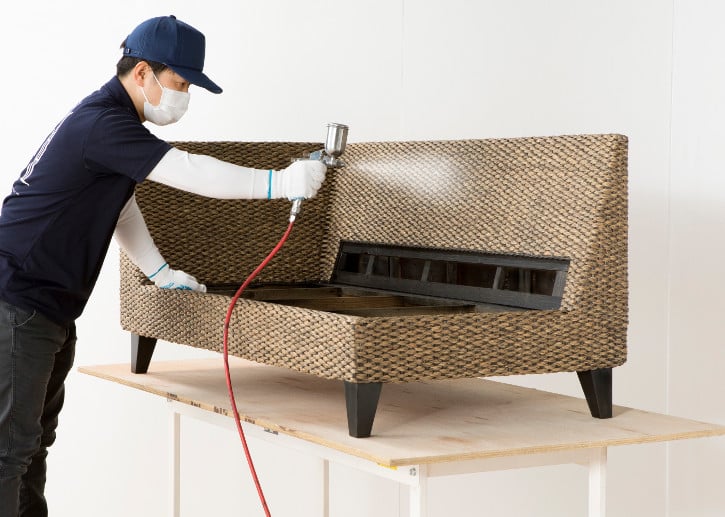 輝きを取り戻すラタン、ウォーターヒヤシンスソファの再塗装メンテナンス