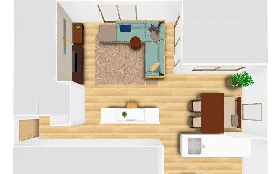 家具を配置したらファブリック・小物を置いてカラーコーディネートを行います。アクセントカラーをプラスするなど全体のバランスを見て配色することができるので、イメージが湧き易いはずです。